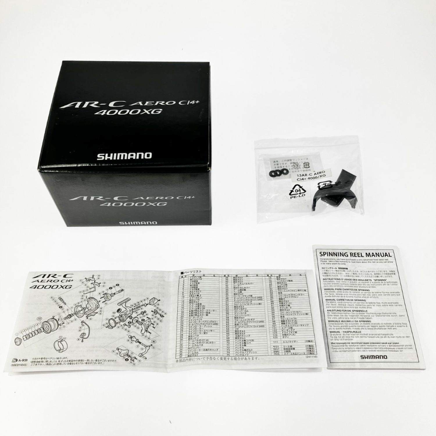 【付属品】取扱説明書,調整ワッシャー,パーツリスト スプール糸止シールとエコノマイザーが付属しております。