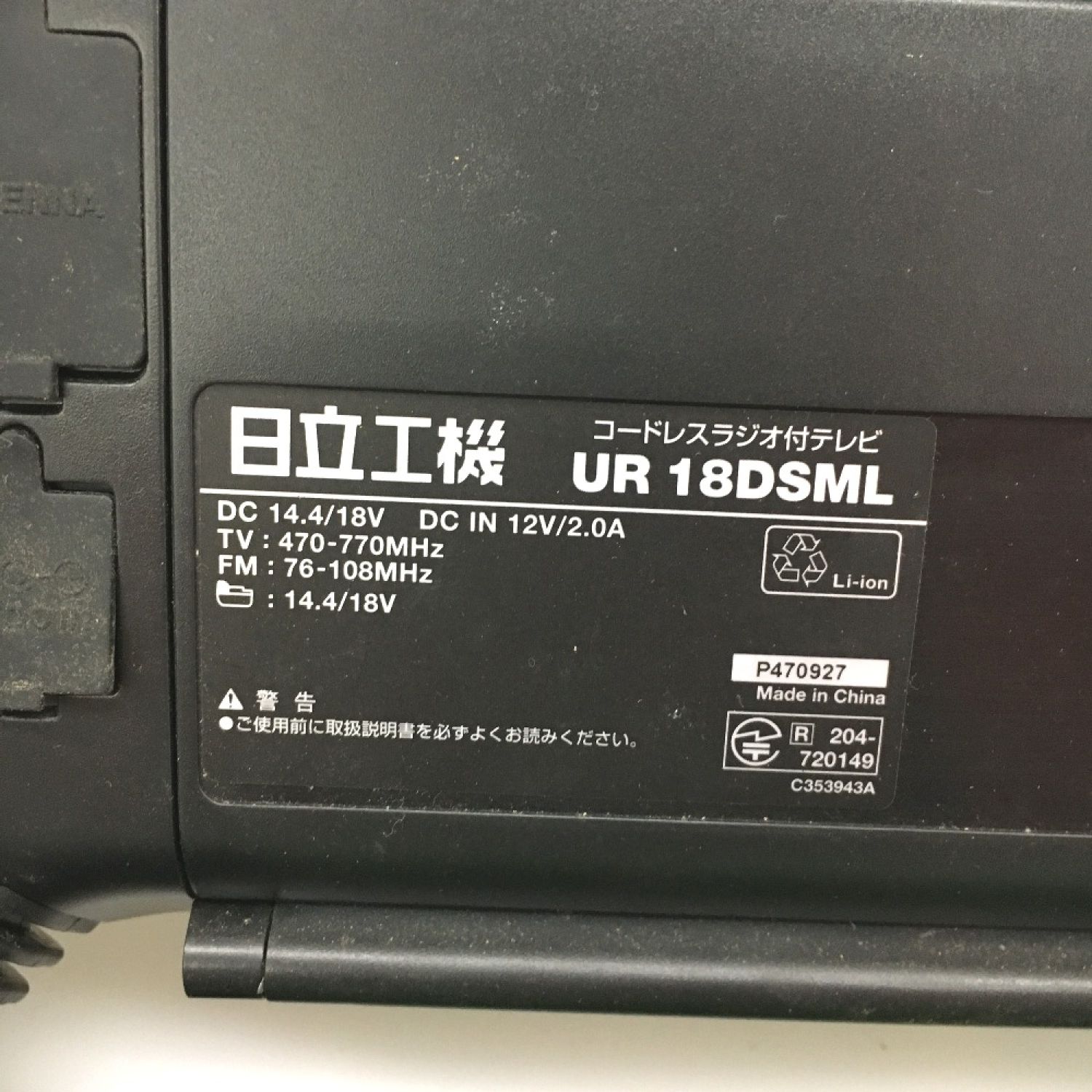【商品名】中古 HITACHI 日立 コードレスラジオ付テレビ 14.4v/18v UR18DSML グリーン Aランク