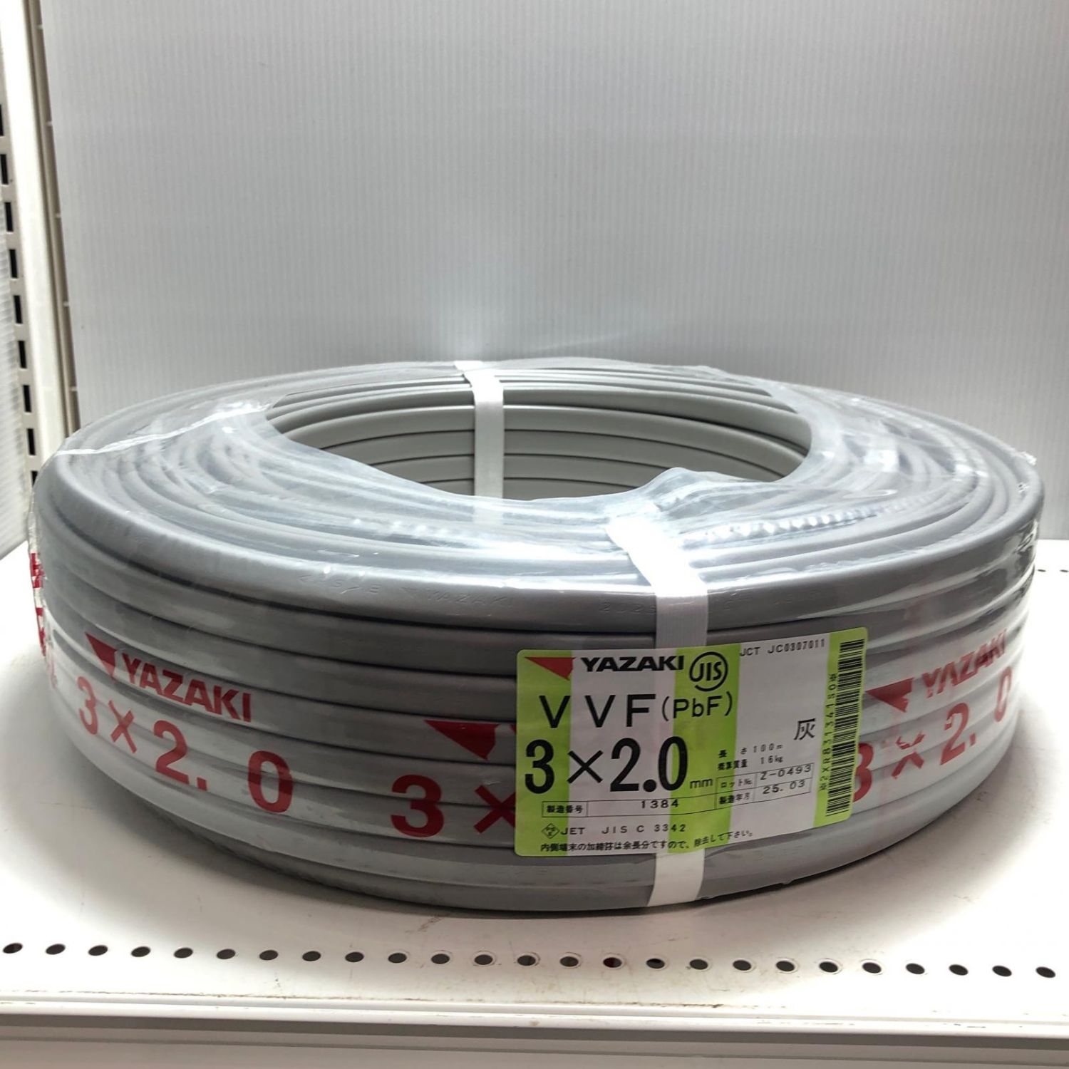 【商品名】中古 YAZAKI VVFケーブル 3芯 2.0mm×100m Sランク