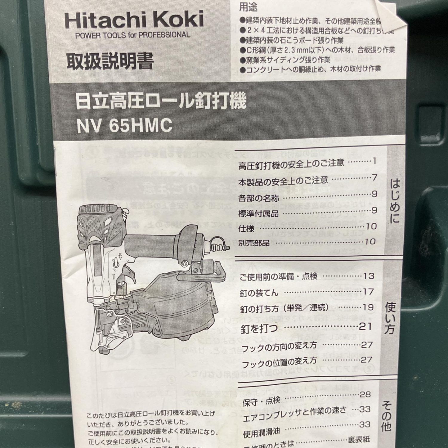 HITACHI 日立 65mm高圧ロール釘打ち ケース付 NV65HMC ブラック