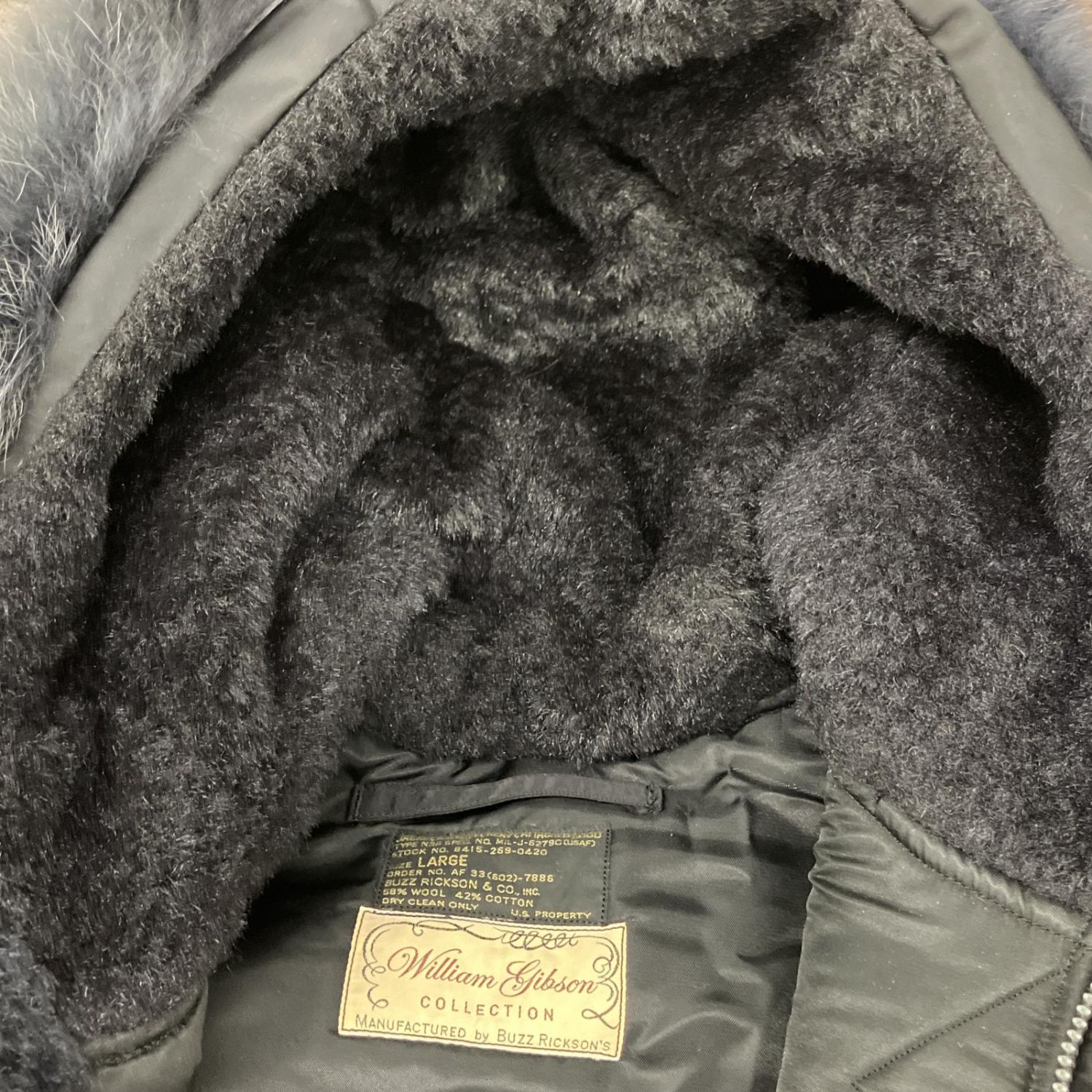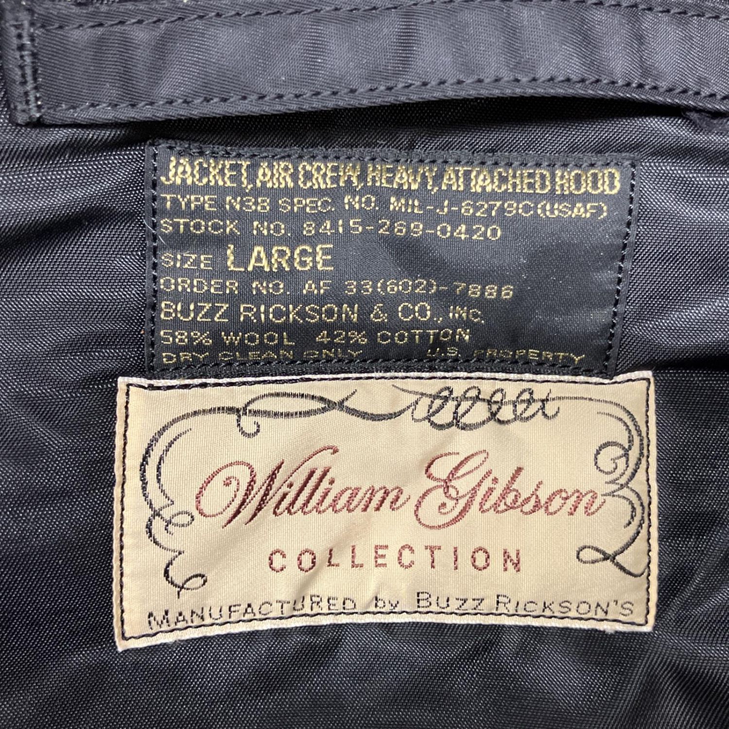 【商品名】中古 BUZZ RICKSON'S バズ リクソンズ ウィリアム ギブソン LARGE コート N-3B ブラック Bランク