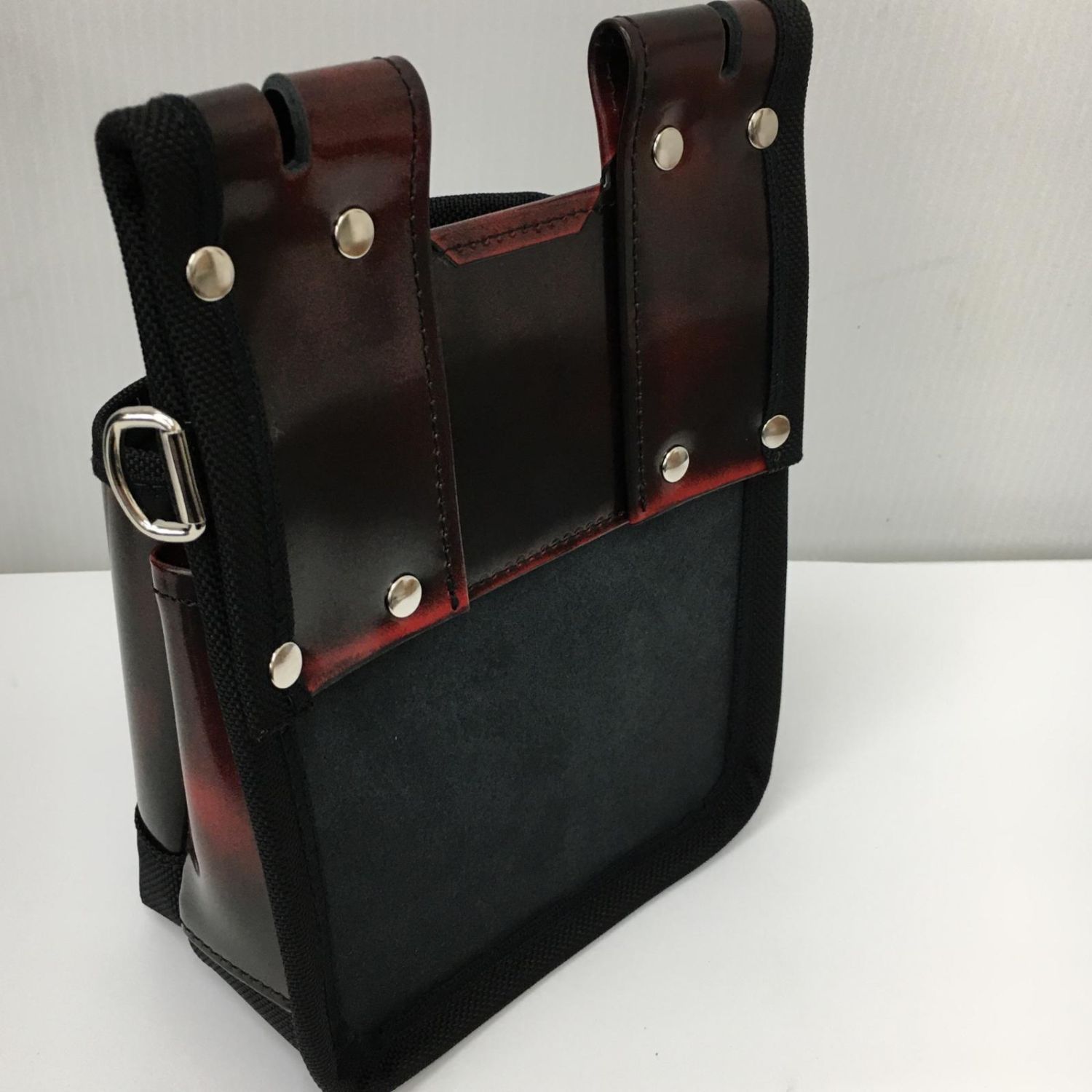 KNICKS 鳶職向仕様ツーウェイタイプアドバンガラス革2段腰袋 レッド ADV-201TB-R ブラウン