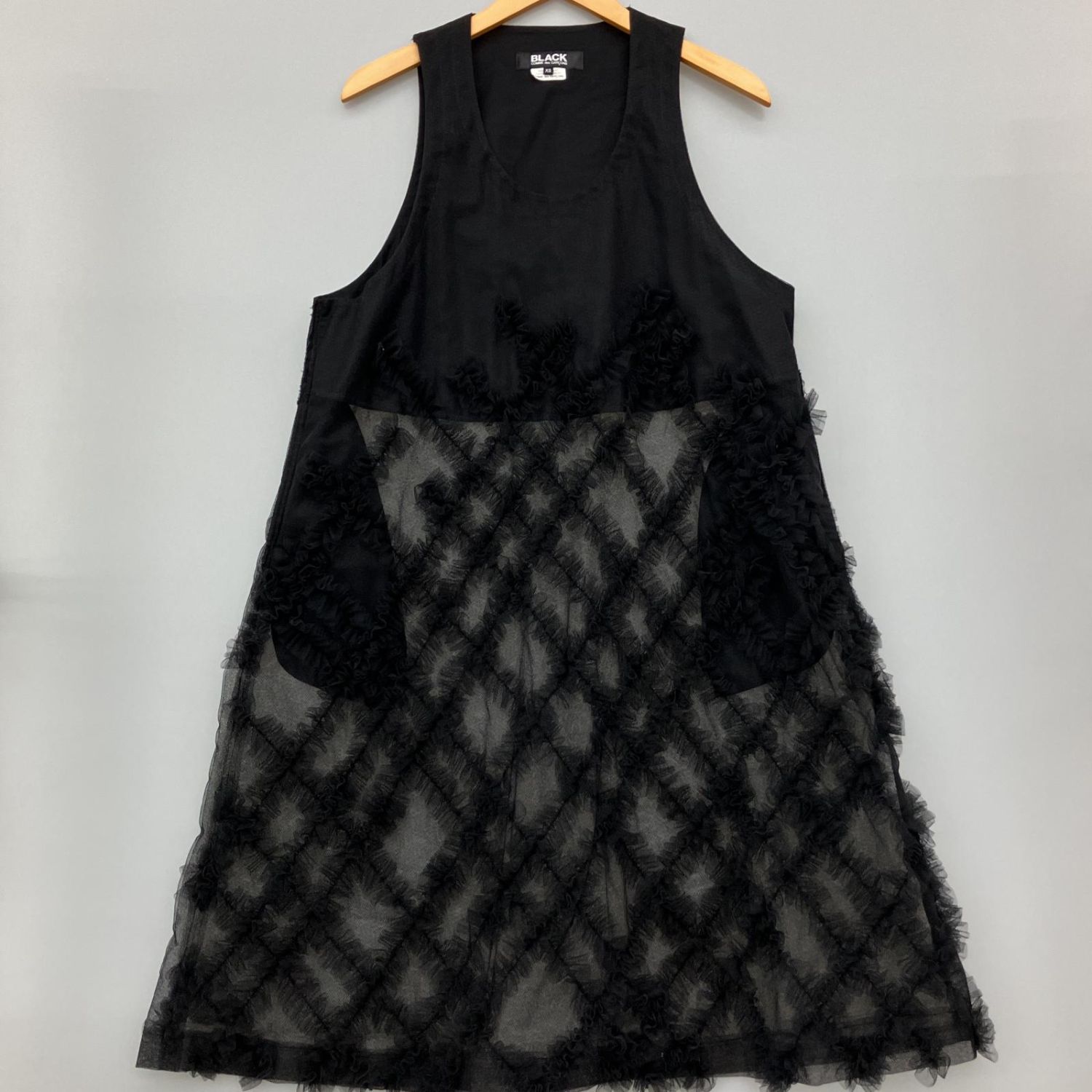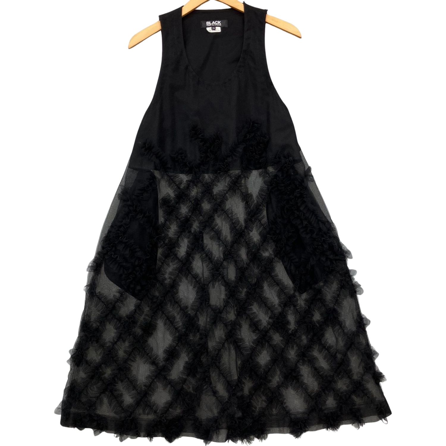 BLACK COMME des GARCONS ナイロンチュール立体格子ワンピース 1O-A004 ブラック