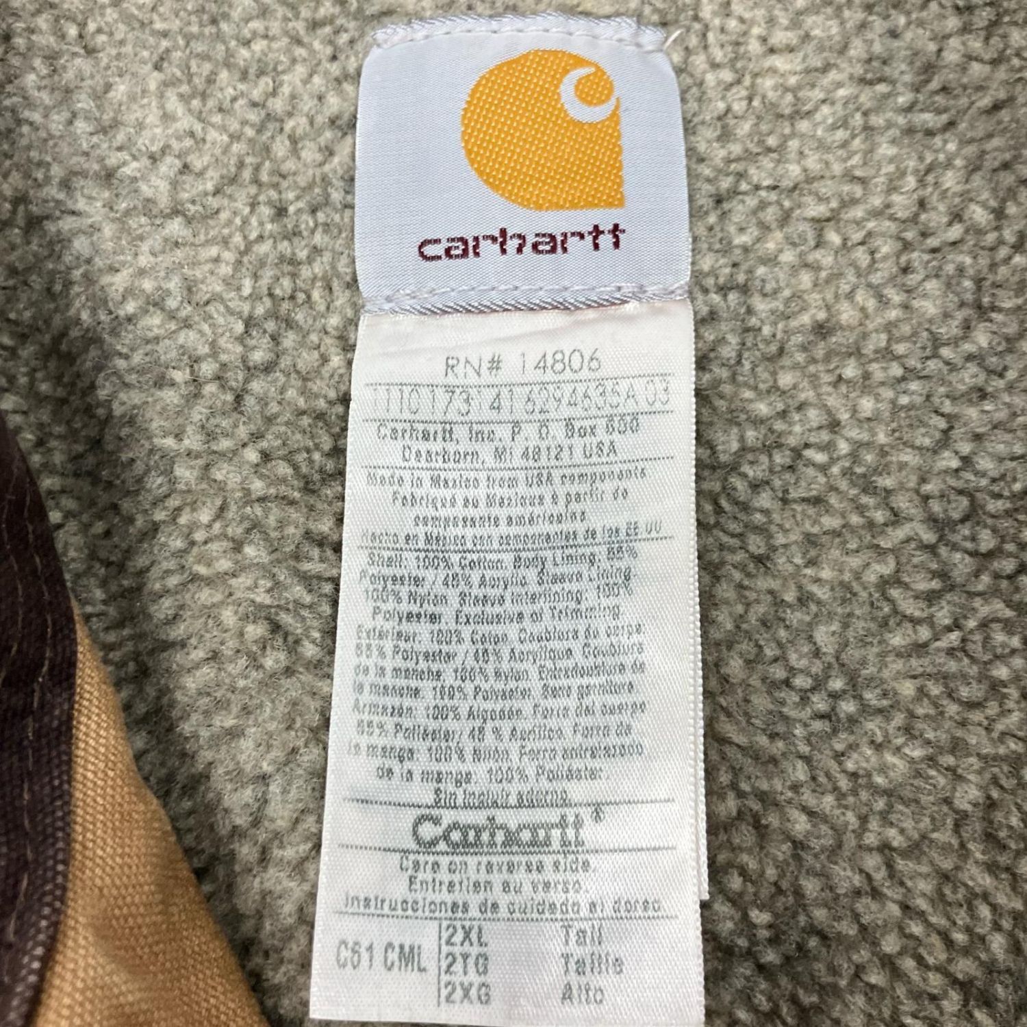 【商品名】中古 Carhartt カーハート ダック地 リッジコート ジャケット 裏ボア 2XL キャメル C61 CML Bランク