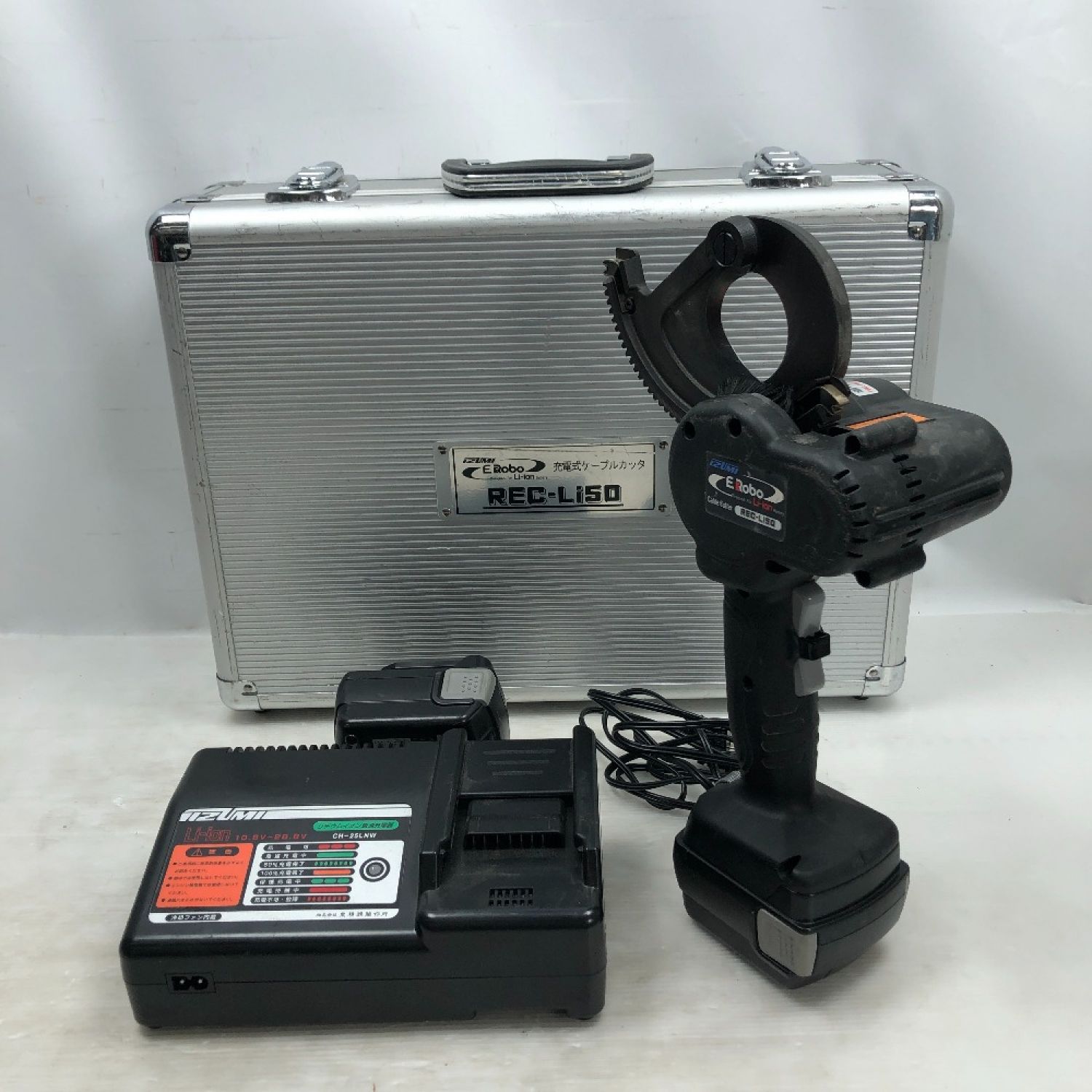 【商品名】中古 IZUMI 電動工具 充電式ケーブルカッター 充電器・充電池2個・ケース付 コードレス式 REC-Li50 ブラック Cランク