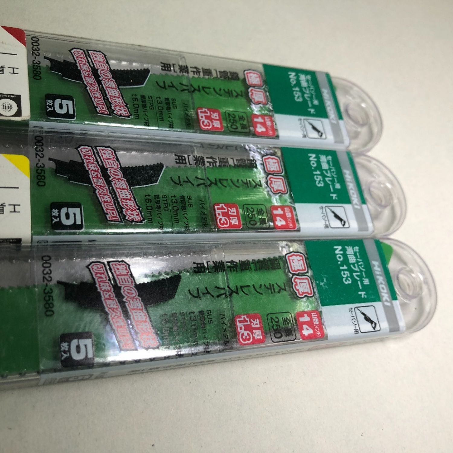 HiKOKI ハイコーキ 工具消耗品 レシプロソー刃 250mm 美品 鋼管【重作業】ステンレスパイプ用 3点セット グリーン