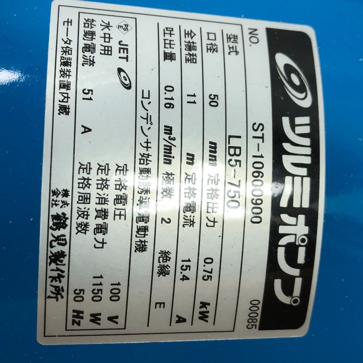 TSURUMI PUMP ツルミポンプ 工具関連用品 水中ポンプ 未使用品(S) 本体のみ LB5-750 ブルー