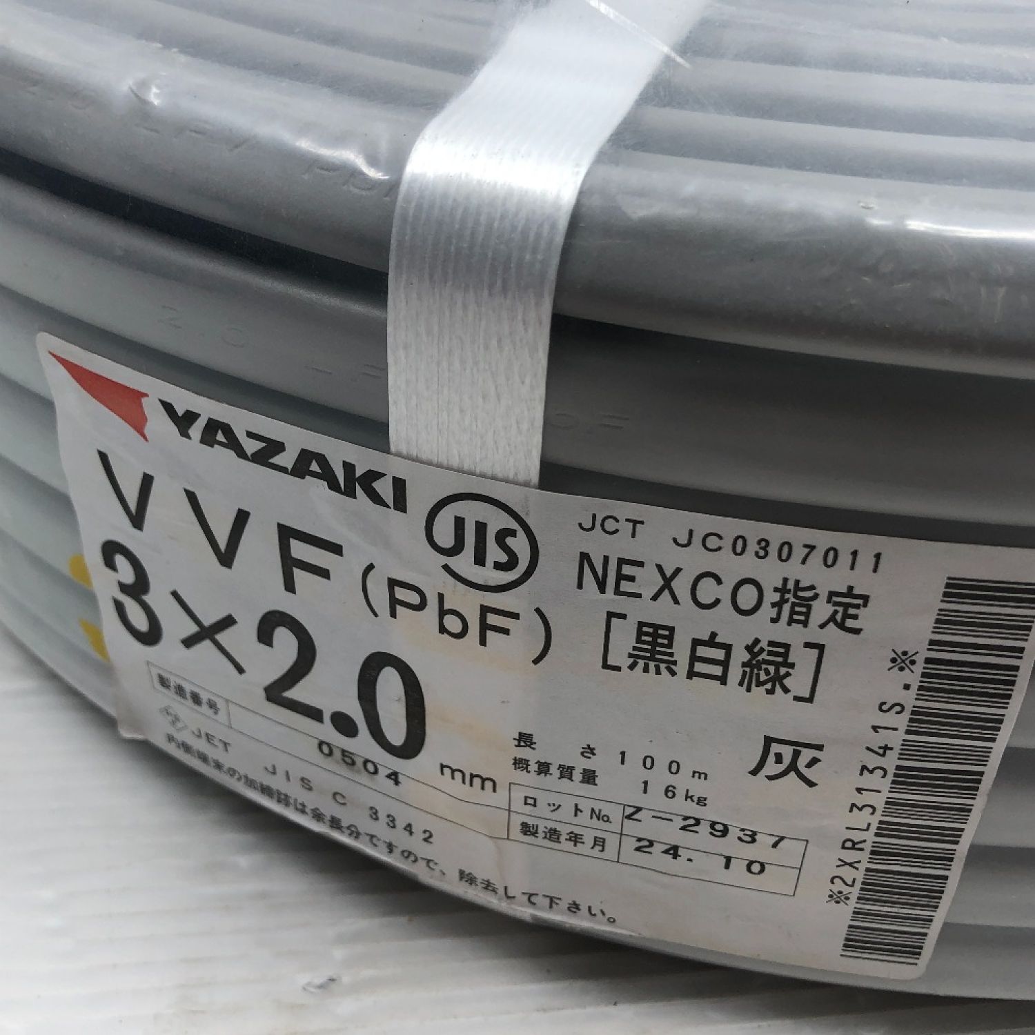 【商品名】中古 YAZAKI 工具 電材 VVFケーブル 未使用品(S) 3x2.0mm グレー Sランク