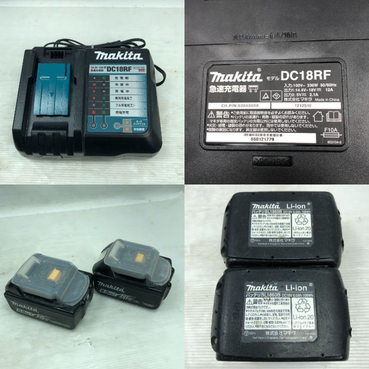 【商品名】中古 MAKITA マキタ 研磨工具 ディスクグラインダー 充電器・充電池2個付 コードレス式 18v GA508D ブルー Cランク
