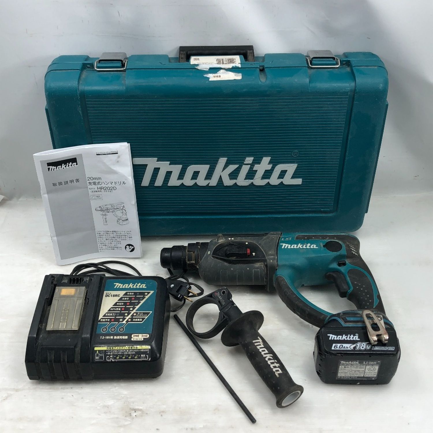 【商品名】中古 MAKITA マキタ 締め付け工具 ハンマドリル 充電器・充電池1個付 コードレス式 18v HR202D ブルー Cランク