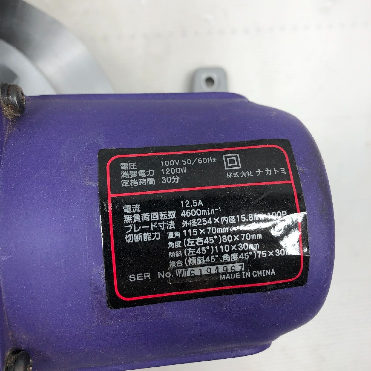 【商品名】中古 NAKATOMI 卓上切断機 本体のみ 254mm 100v MCS-254N パープル Cランク