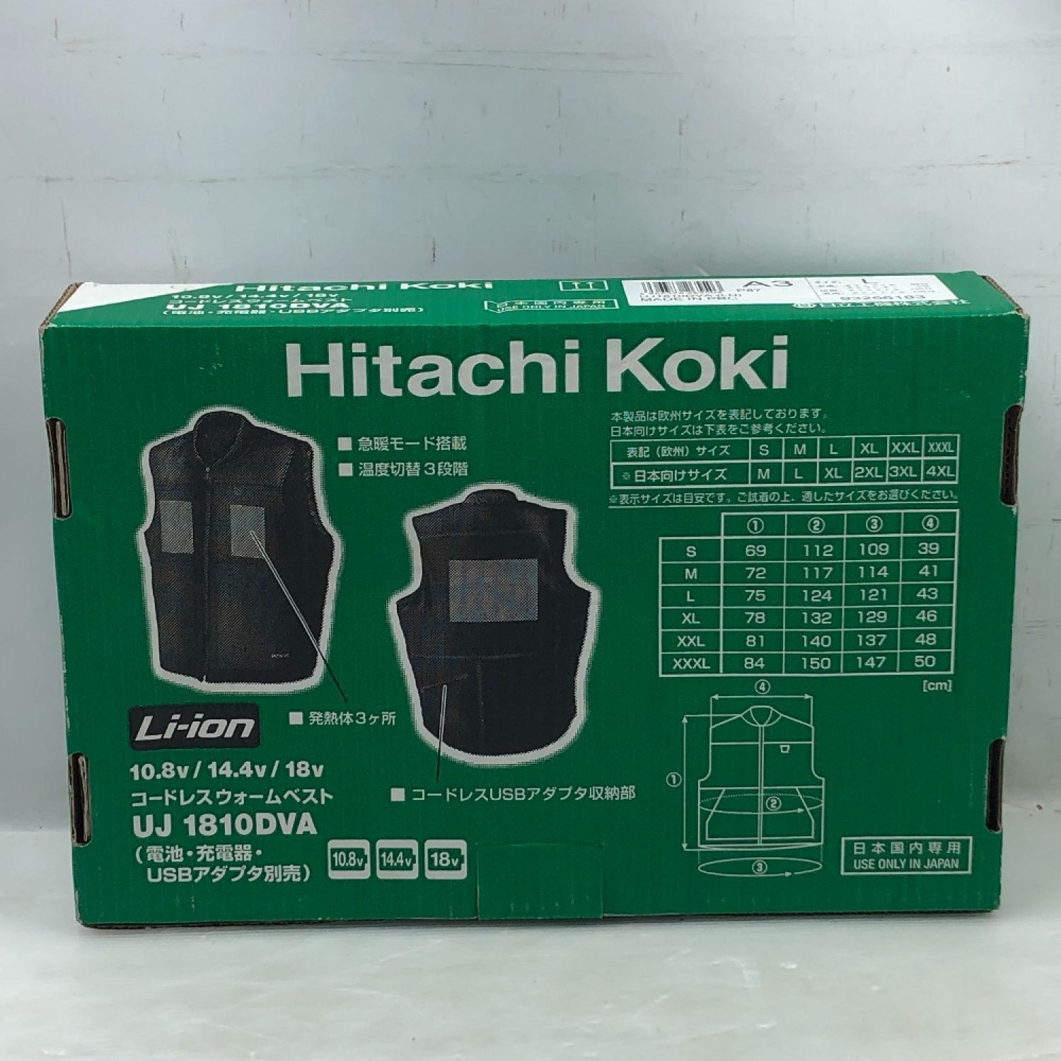 HITACHI 日立 工具関連用品 コードレスウォームベスト USBアダプタ付 Lサイズ 未使用品(S) UJ1810DVA ブラック