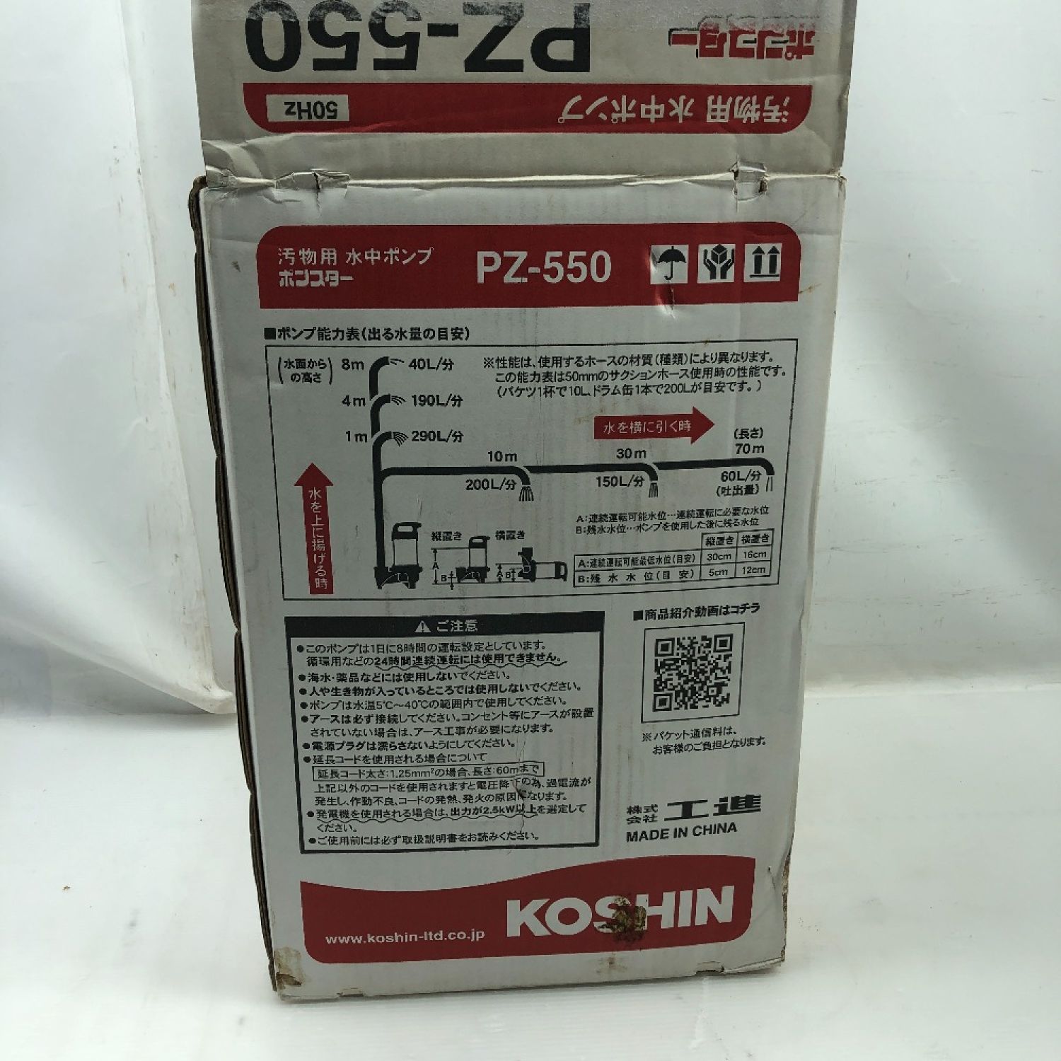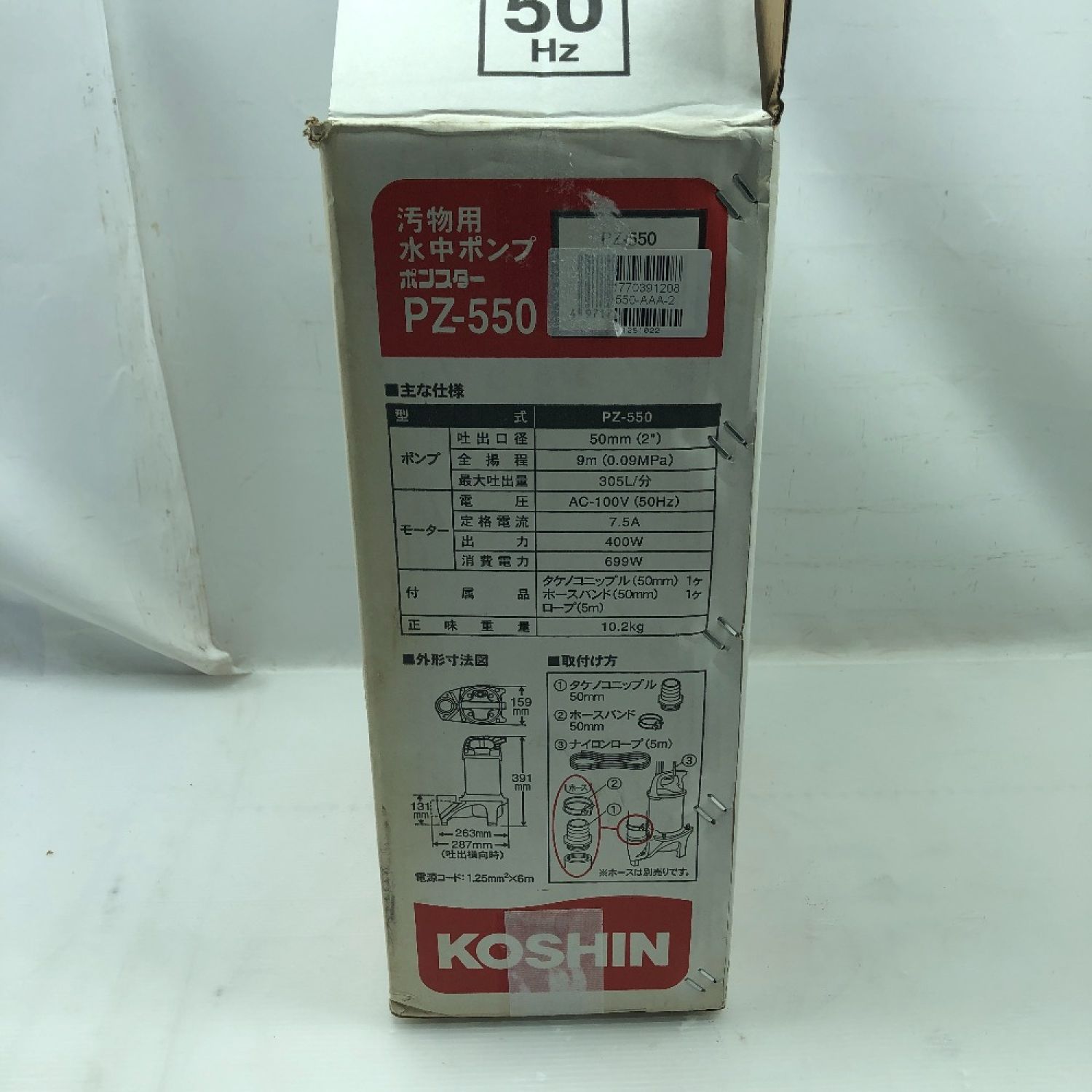KOSHIN 工具 水中ポンプ 未使用品(S) 紐、ホースバンド付 コード式 PZ-550 シルバー