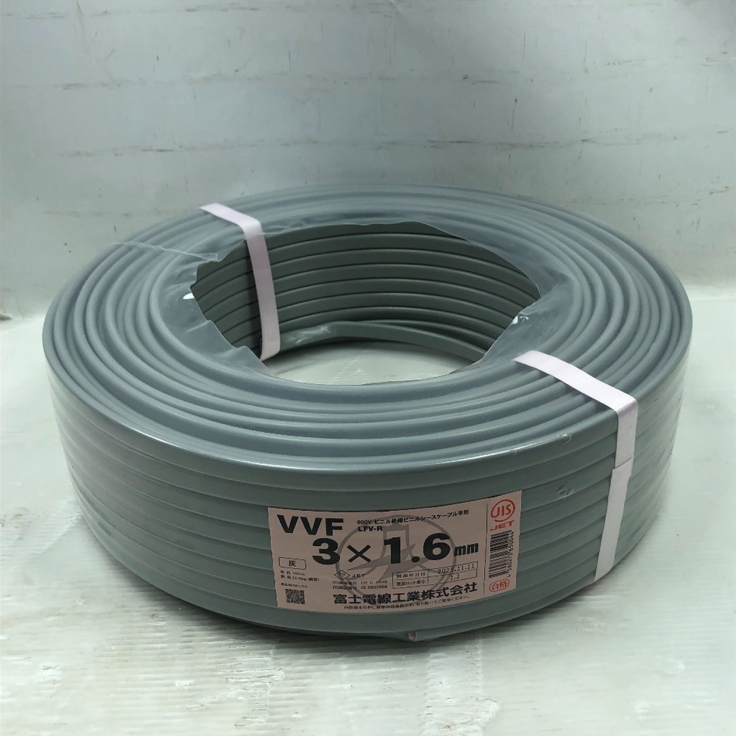 富士電線工業 工具 電材 VVFケーブル 未使用品(S) 3芯 1.6mm×100m 2025年11月(令和7年) グレー