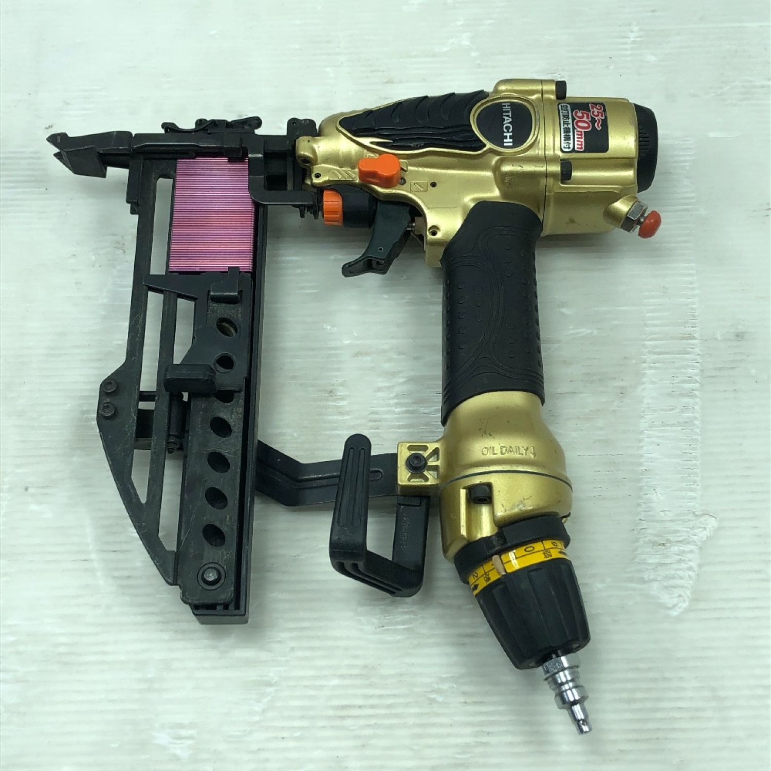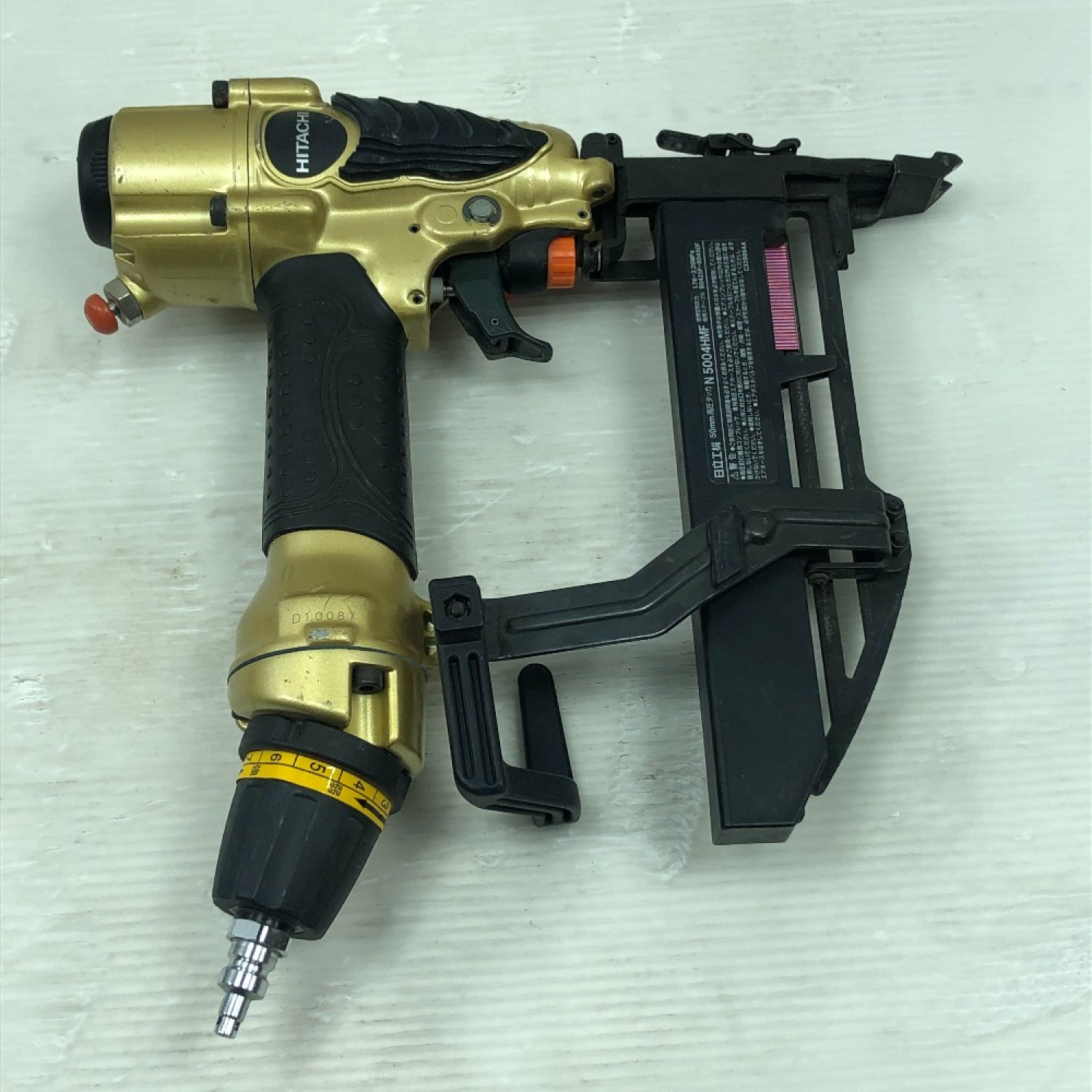 【商品名】中古 HITACHI 日立 工具 エアツール エアタッカ 本体のみ 高圧 N5004HMF ゴールド Cランク