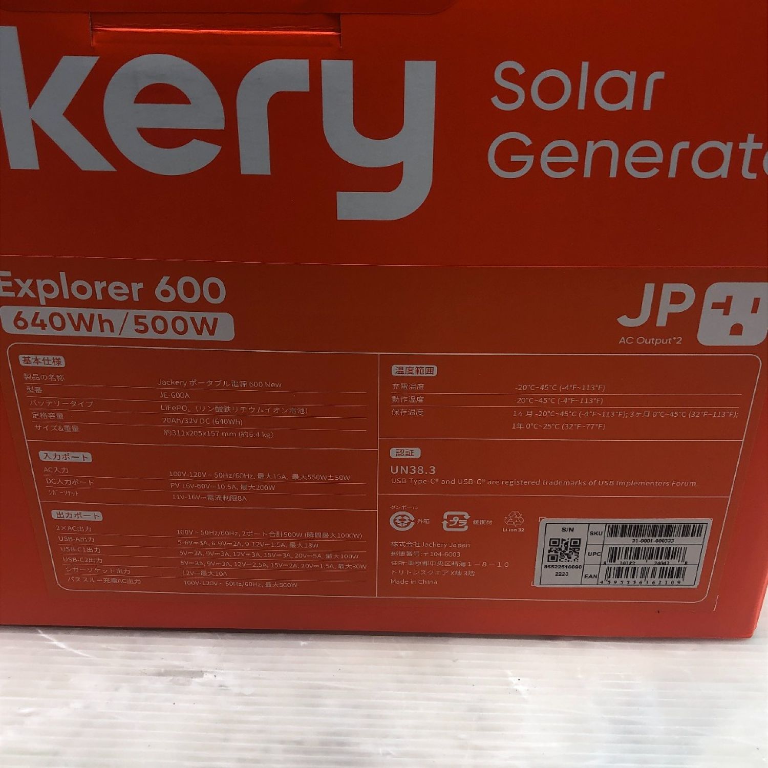 【商品名】中古 Jackery 工具関連用品 ポータブル電源 未使用品(S) 本体のみ JE-600A オレンジ Sランク