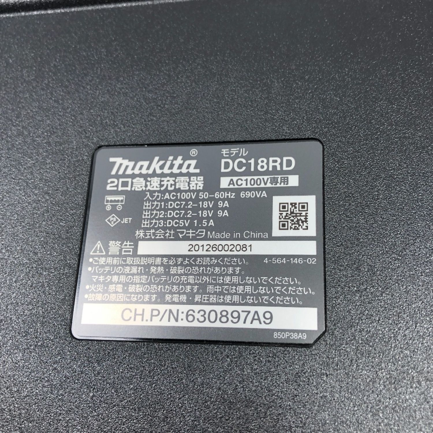 【商品名】中古 MAKITA マキタ 工具関連用品 バッテリー充電器 本体のみ コード式 100v DC18RD ブラック Cランク