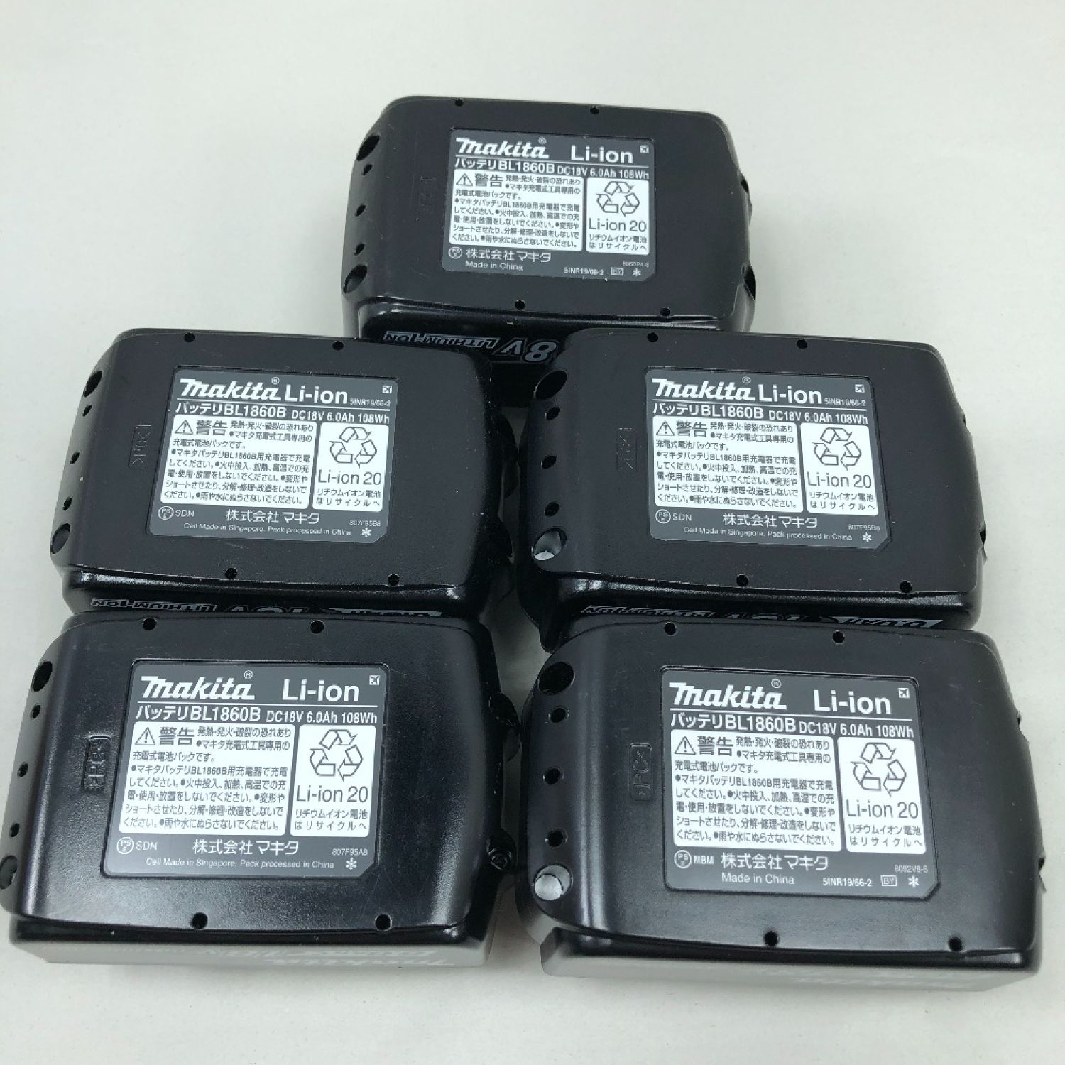 【商品名】中古 MAKITA マキタ 工具関連用品 バッテリー 未使用品(S) 5個セット BL1860B ブラック Sランク