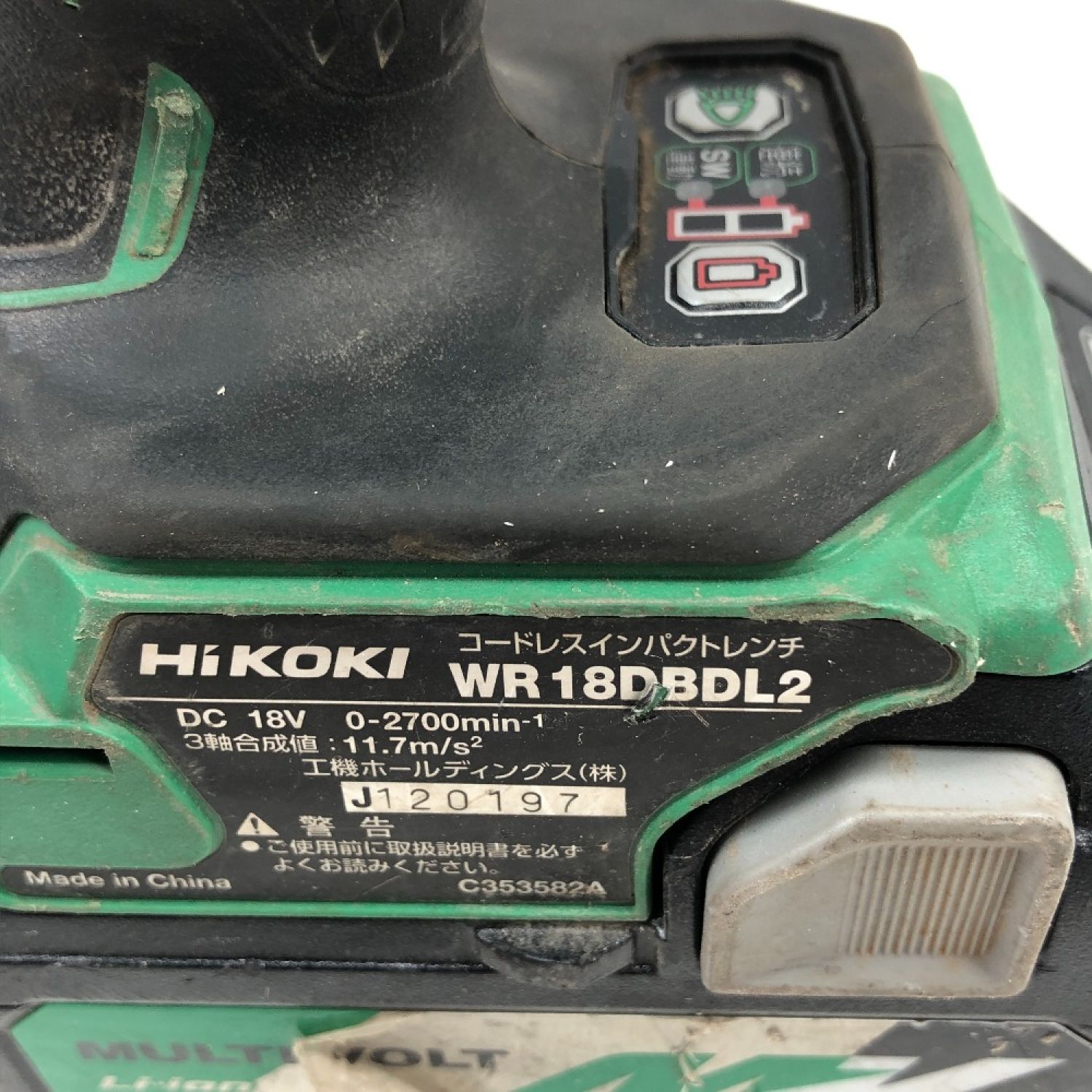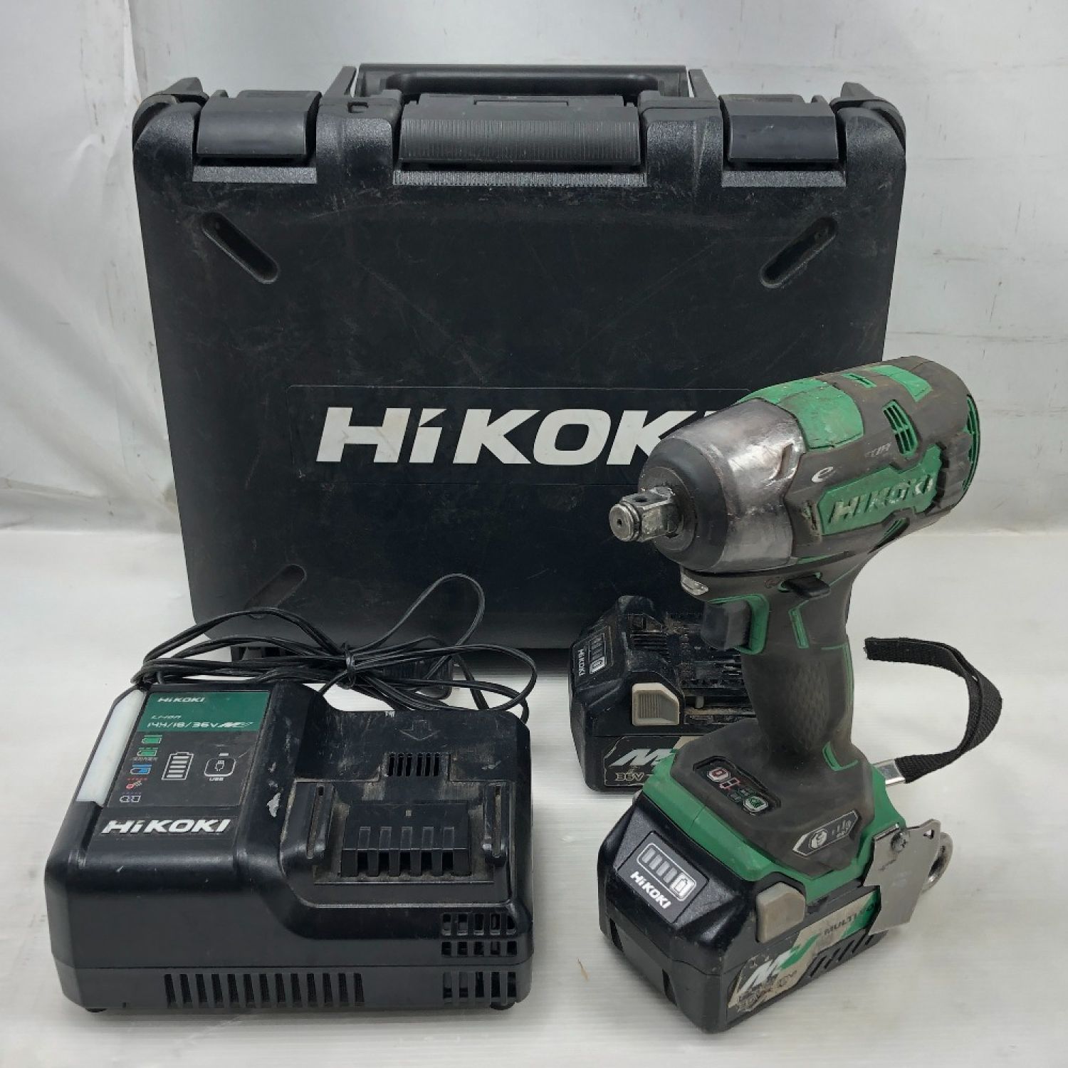 【商品名】中古 HiKOKI ハイコーキ 工具 インパクトレンチ 充電器・充電池2個・ケース付 コードレス式 WR18DBDL2 グリーン Cランク