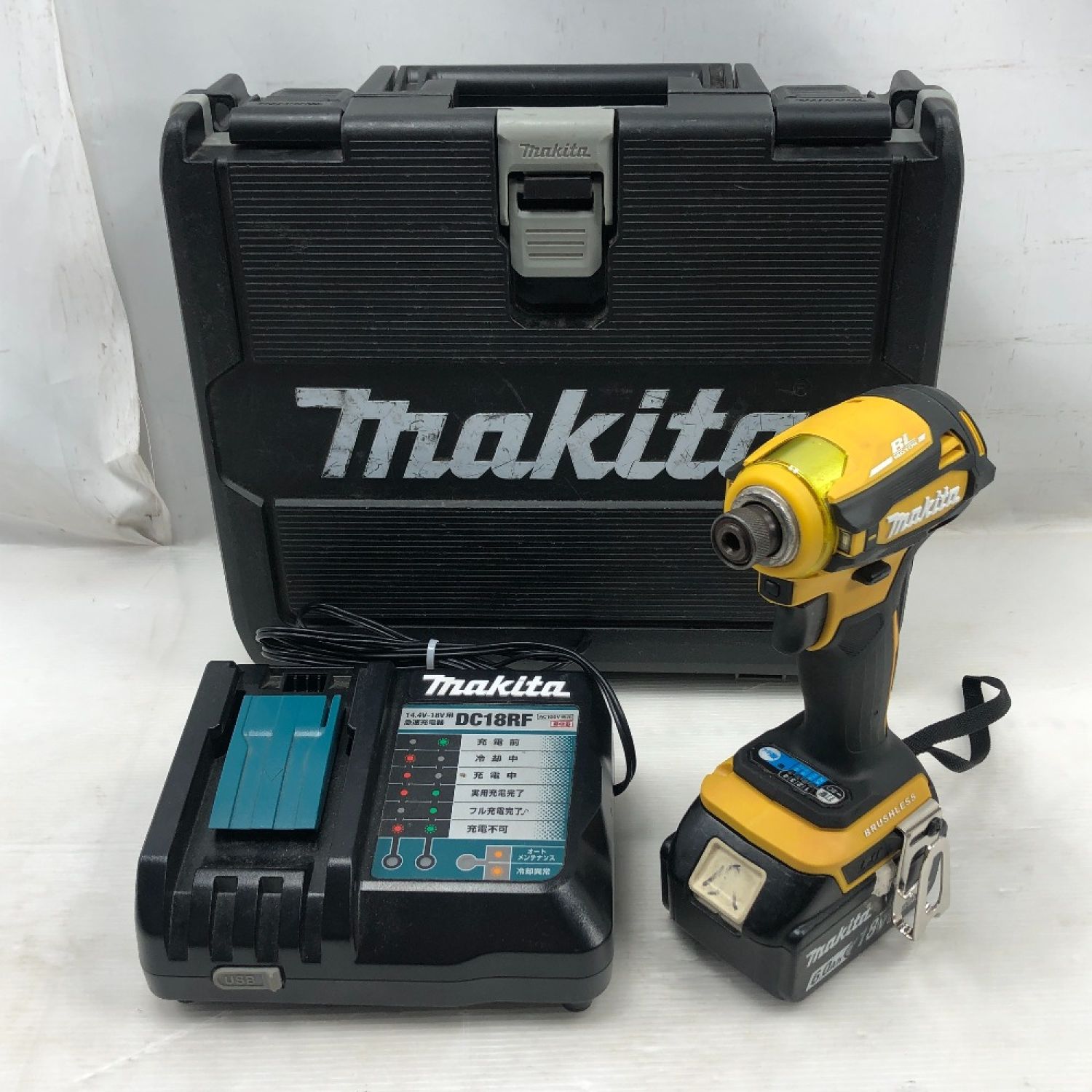 【商品名】中古 MAKITA マキタ 工具 インパクトドライバ 充電器・充電池1個・ケース付 コードレス式 TD172D イエロー Cランク