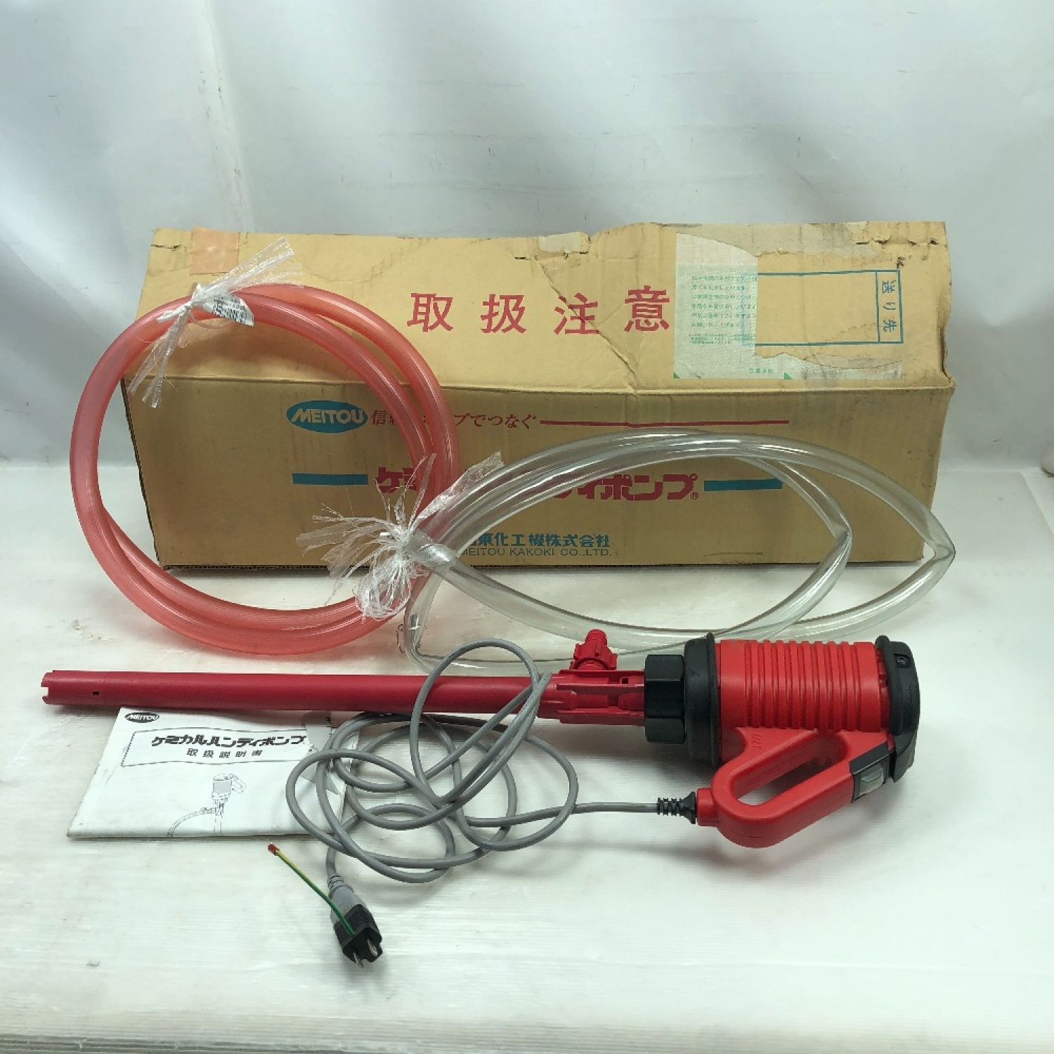 【商品名】中古 名東 工具 ハンディポンプ ホース2本 コード式 100v MHM-21N レッド Cランク
