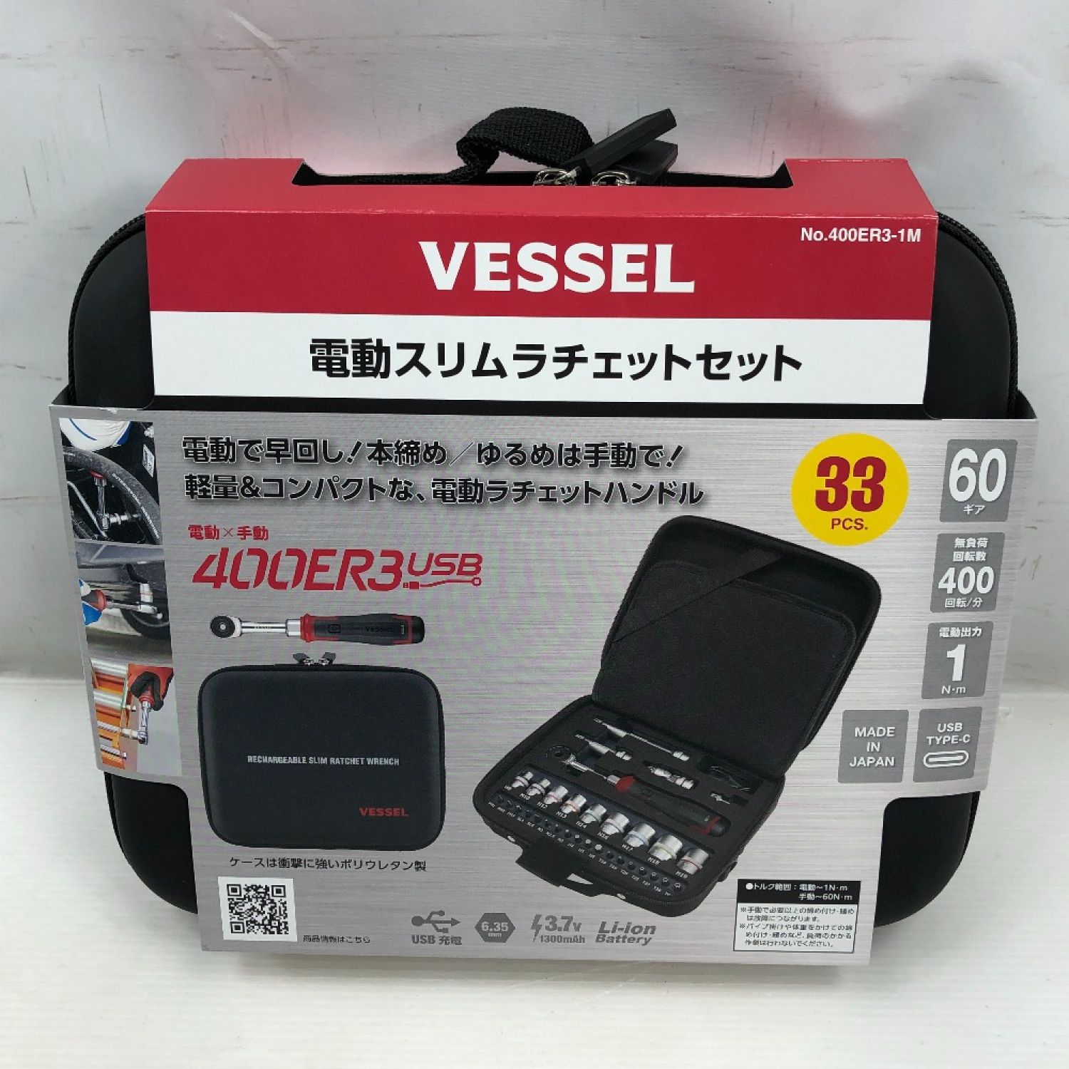 VESSEL ベッセル 工具 ハンドツール 電動スリムラチェット 未使用品(S) コードレス式 400ER3-1M ブラック
