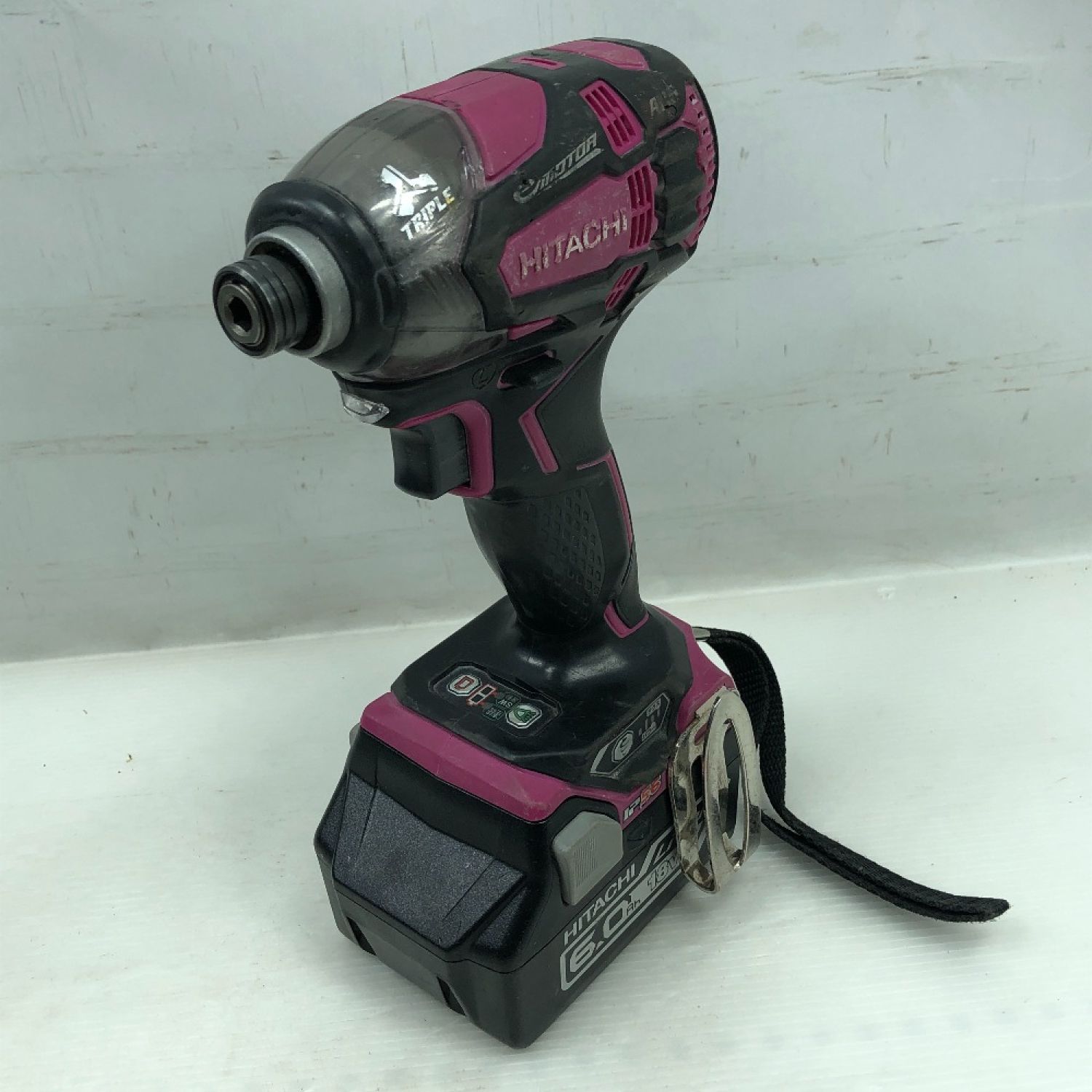【商品名】中古 HITACHI 日立 工具 インパクトドライバ 充電器・充電池2個・ケース付 WH18DDL2 ショッキングピンク Cランク