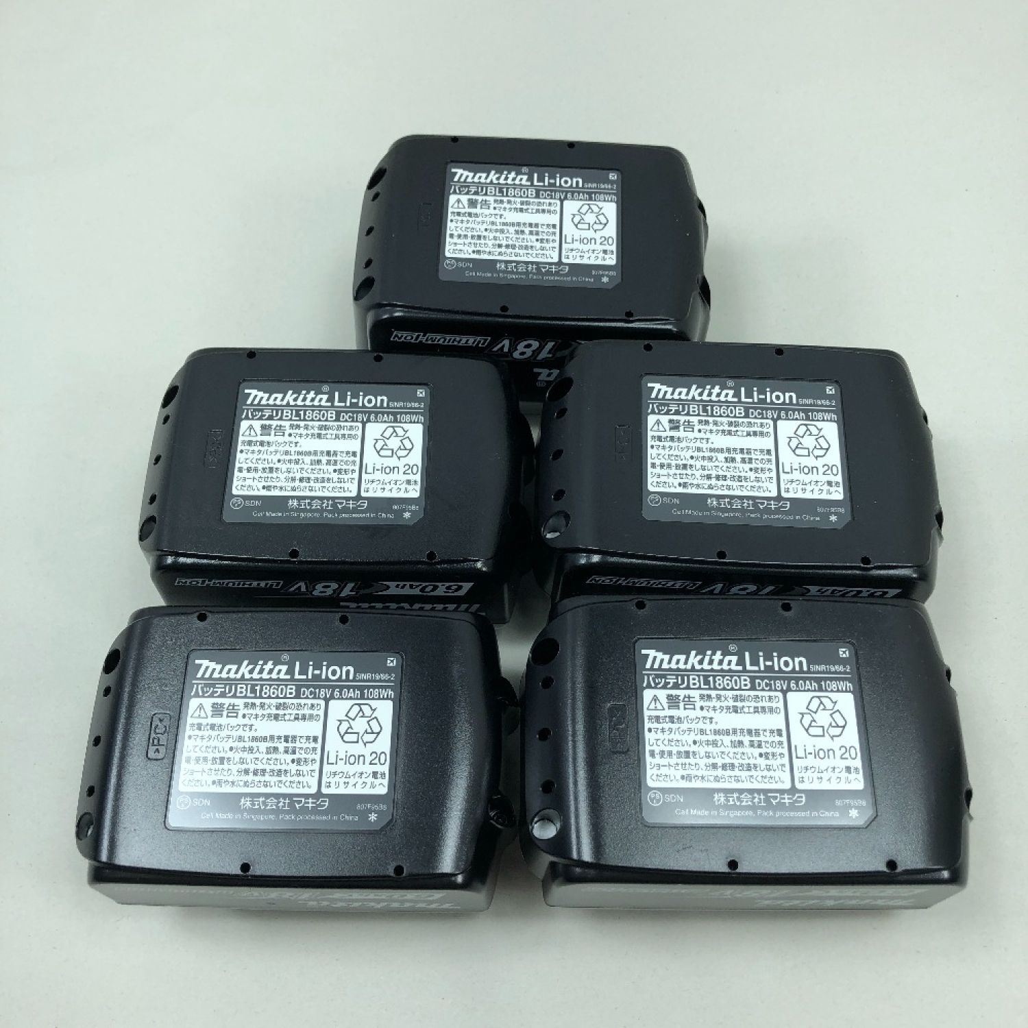 【商品名】中古 MAKITA マキタ 工具関連用品 バッテリー 未使用品(S) 5個セット BL1860B ブラック Sランク
