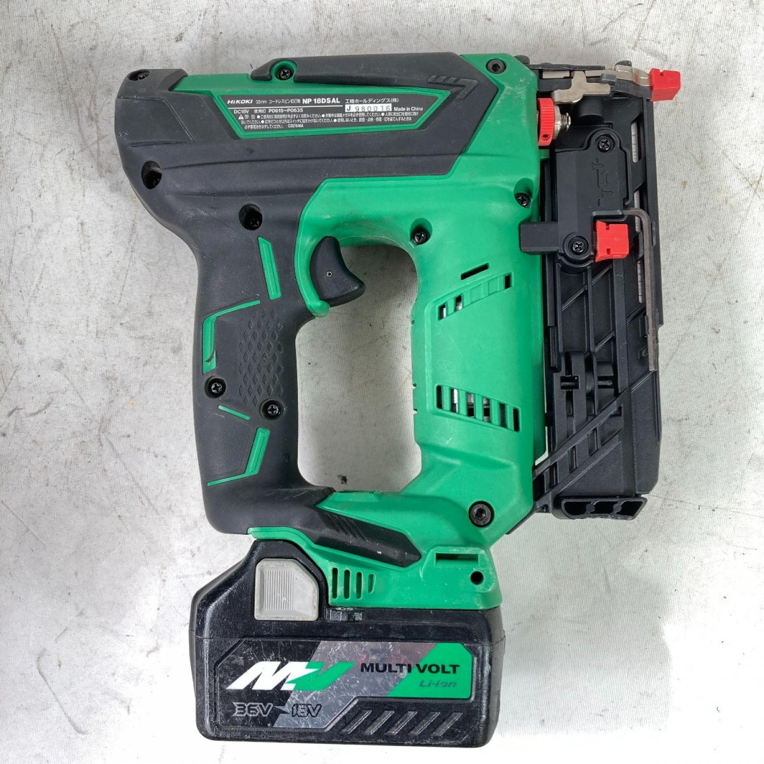 【商品名】中古 HiKOKI ハイコーキ 18V 35mm コードレスピン釘打機 (バッテリ1個・充電器・ケース付) NP18DSAL グリーン Cランク