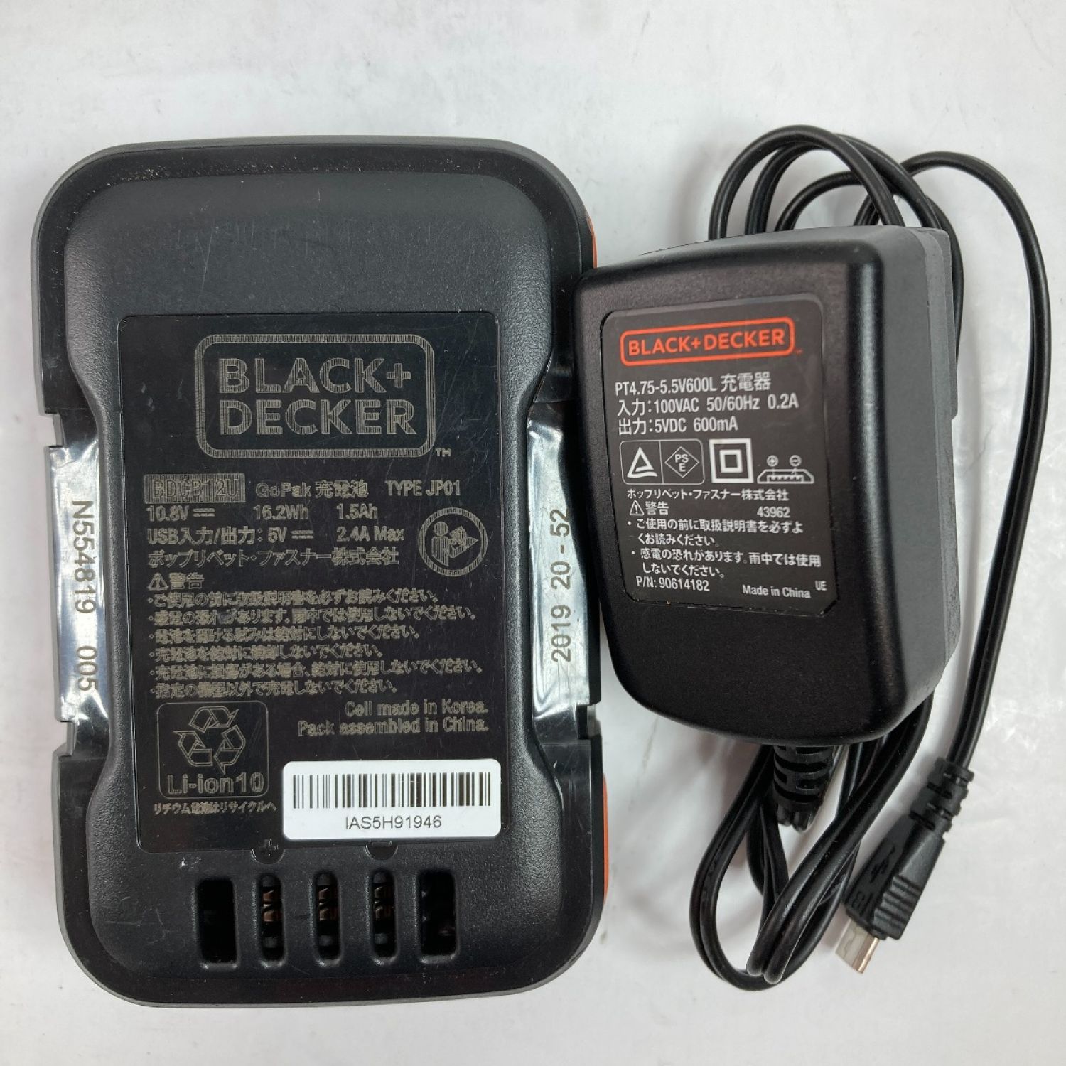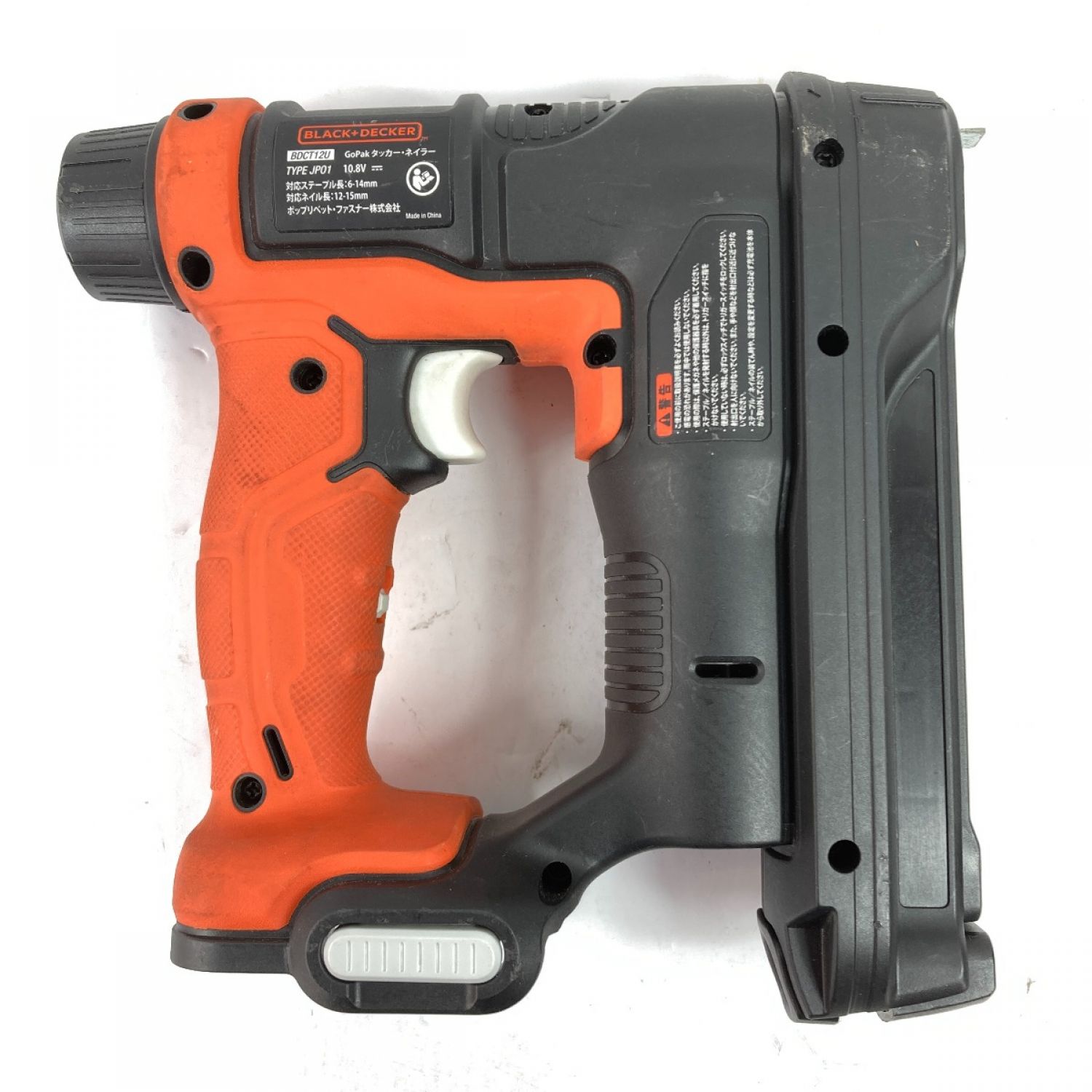 【商品名】中古 BLACK+DECKER ブラックアンドデッカー 10.8V コードレスタッカ (バッテリ1個・充電アダプタ付) ブラック×オレンジ Bランク