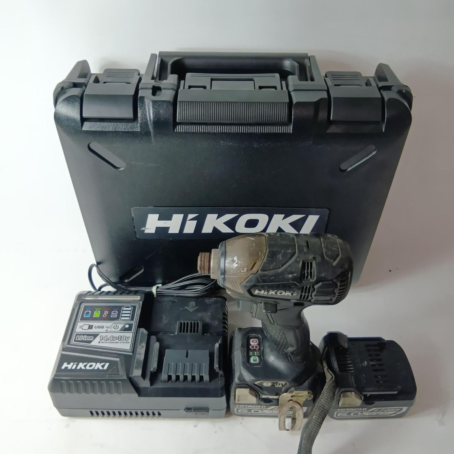 【商品名】中古 HiKOKI ハイコーキ インパクトドライバ WH14DDL2 2LYPK ブラック 充電器・充電池2個・ケース付 コードレス式 14.4v 6.0Ah Cランク