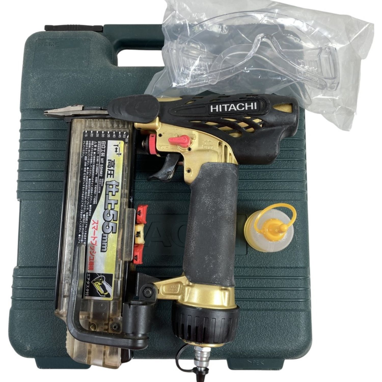 HITACHI 日立 55mm 高圧仕上釘打機 ケース付 NT55HM2 ゴールド×ブラック