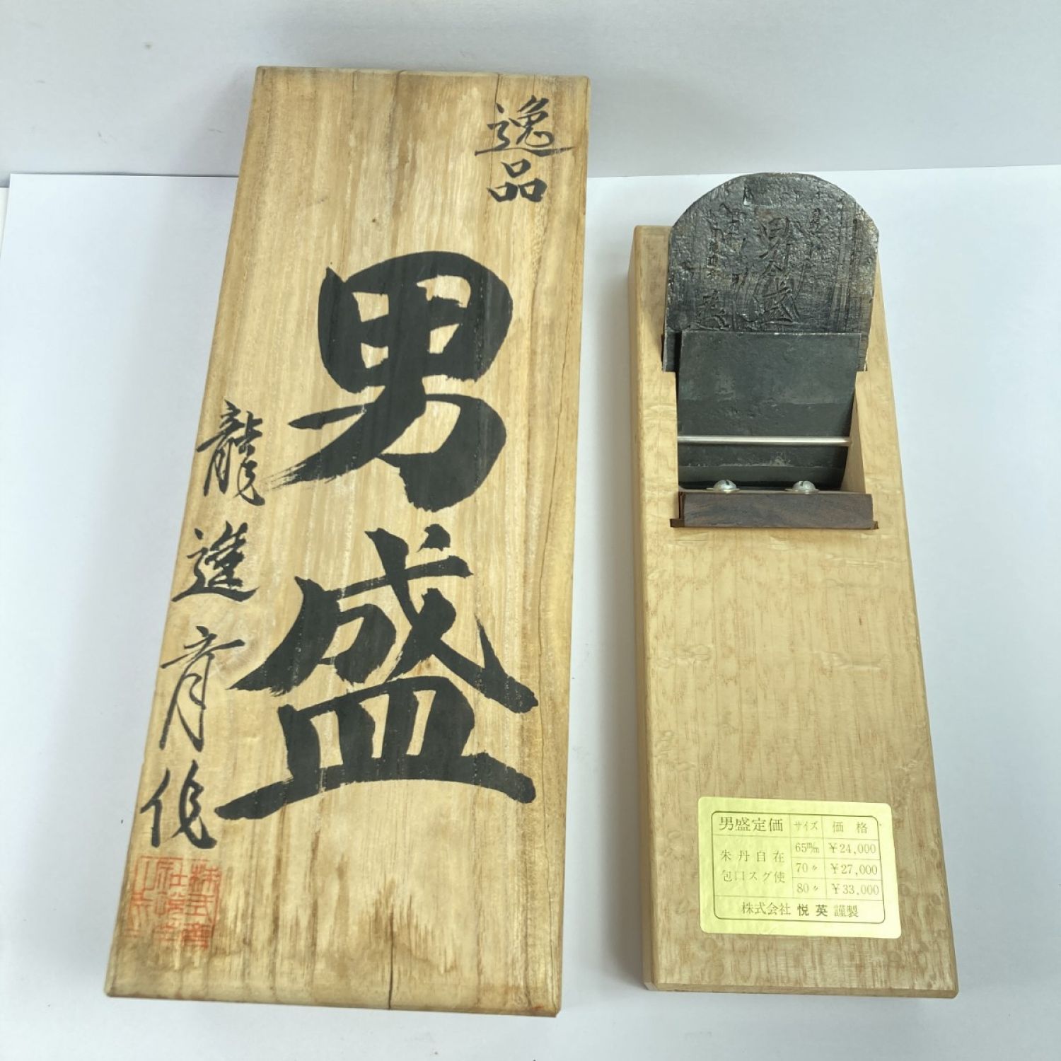 「男盛」 男盛」 龍進斉作 寸八鉋 桐箱付 (2) 龍進斉作