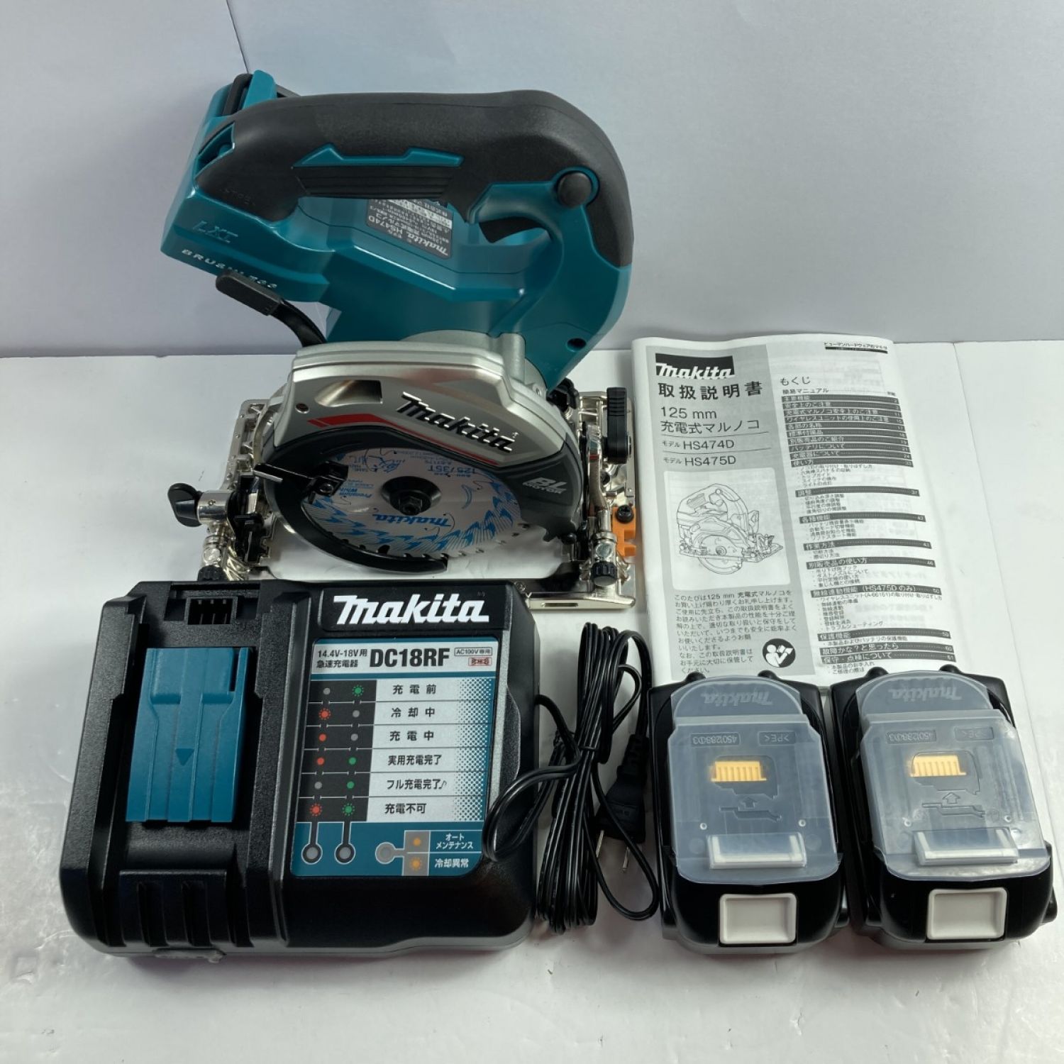 MAKITA マキタ 18V 125mm 充電式マルノコ 鮫肌 (充電器・バッテリ2個・ケース付) HS474DRGX ブラック