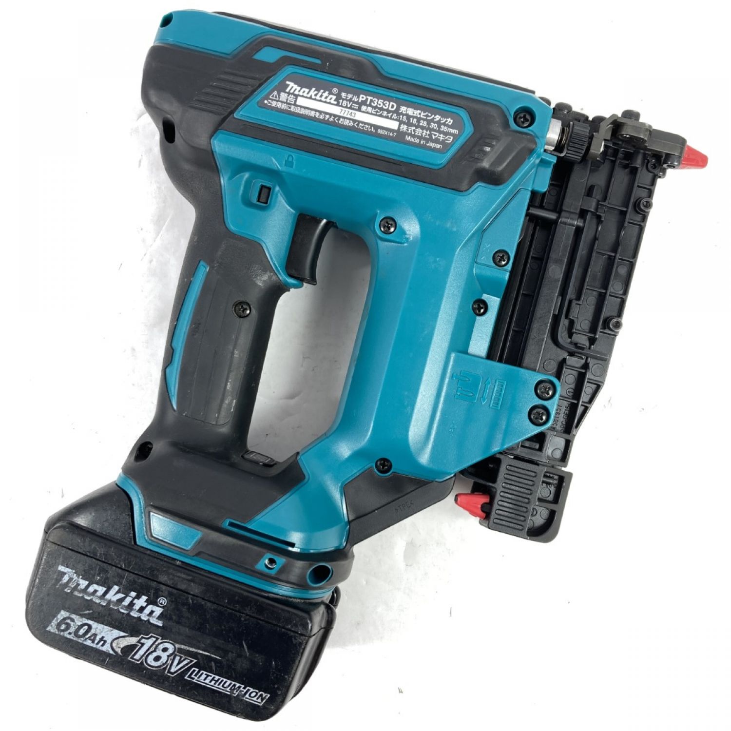 【商品名】中古 MAKITA マキタ 18V 充電式ピンタッカ (バッテリ1個・充電器・ケース付) PT353DZK ブルー Bランク