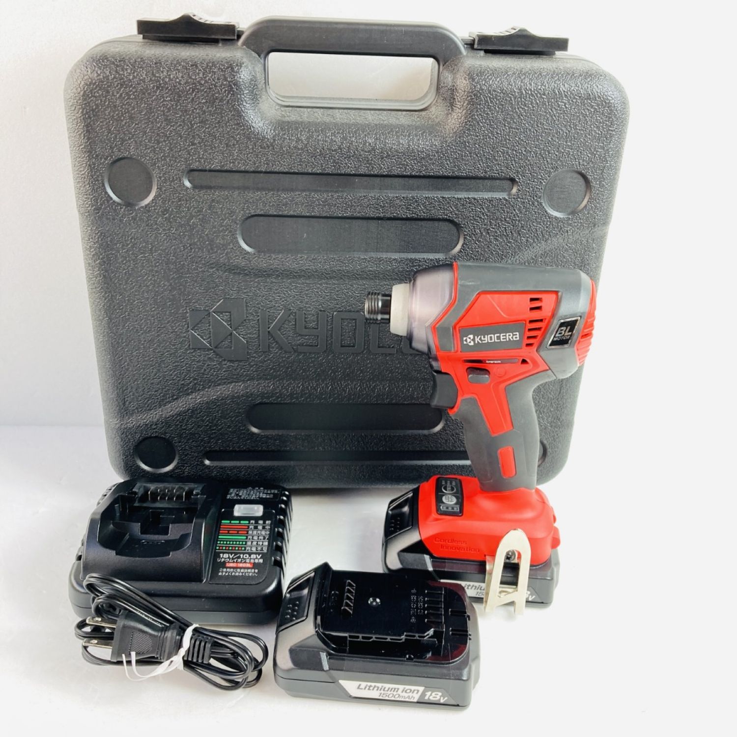KYOCERA キョウセラ 18V/1.5Ah 充電式インパクトドライバ バッテリ2個・充電器・ケース付 BID1807L1 レッド×ブラック