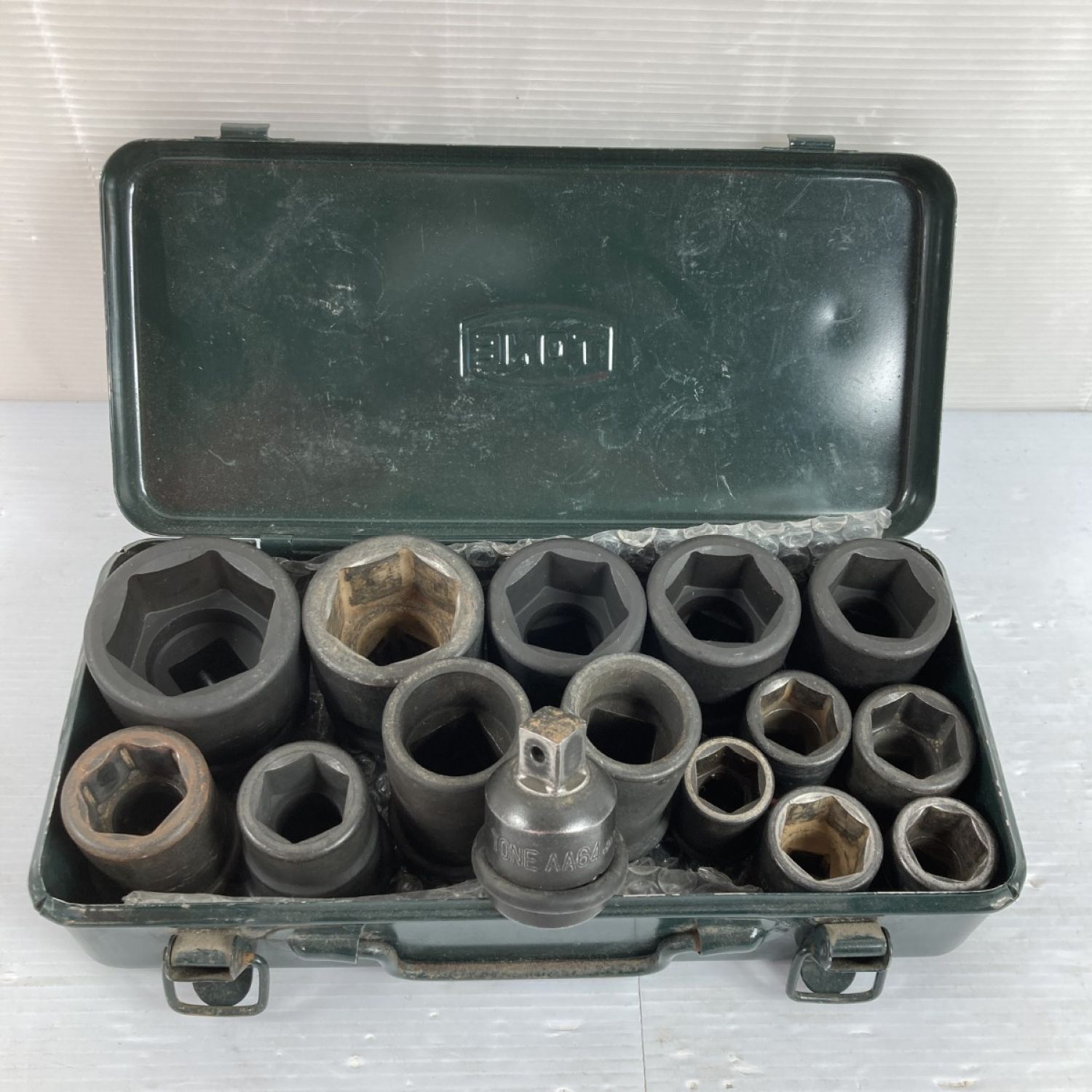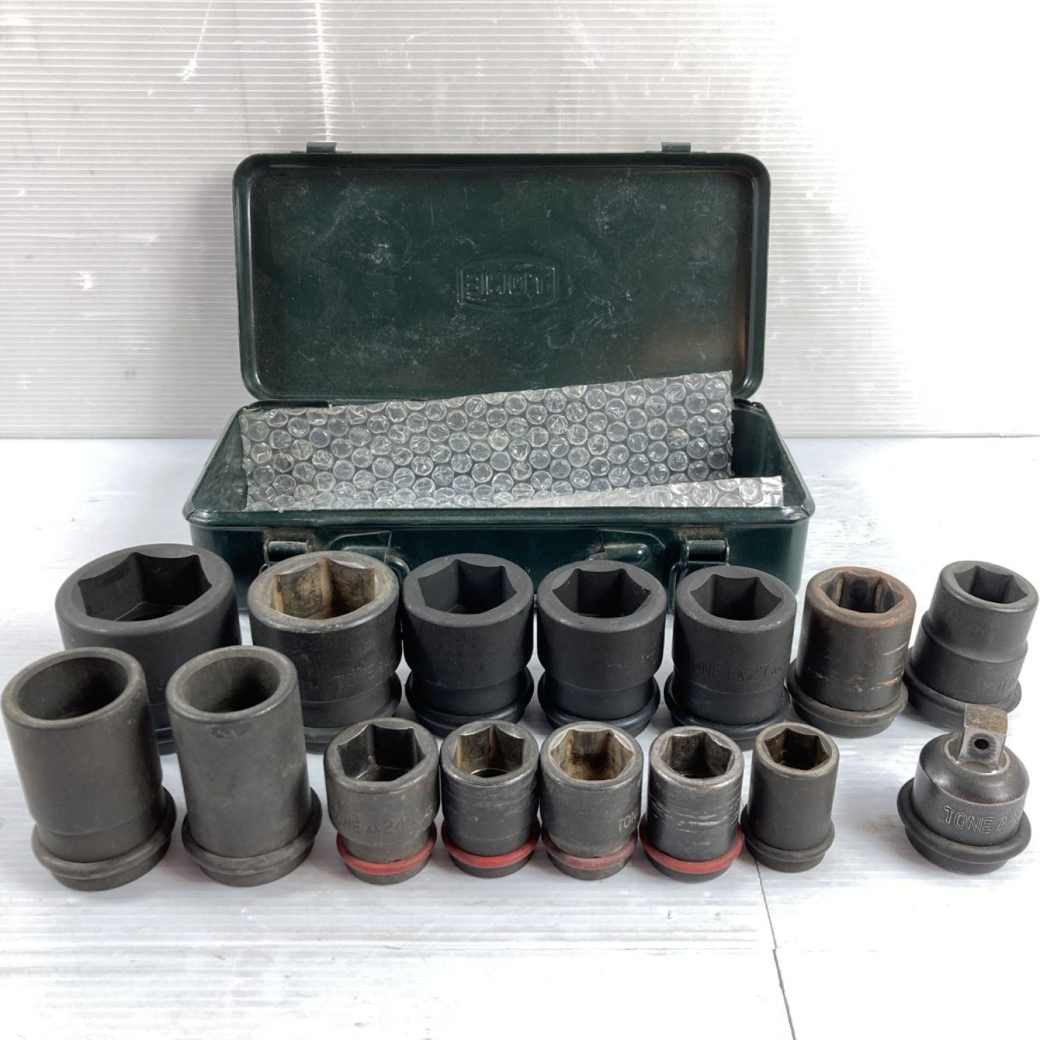 【商品名】中古 TONE トネ インパクトソケットセット 6角 19sq & 12.7sq 変換用アダプタ付属 15pc ケース付 Cランク