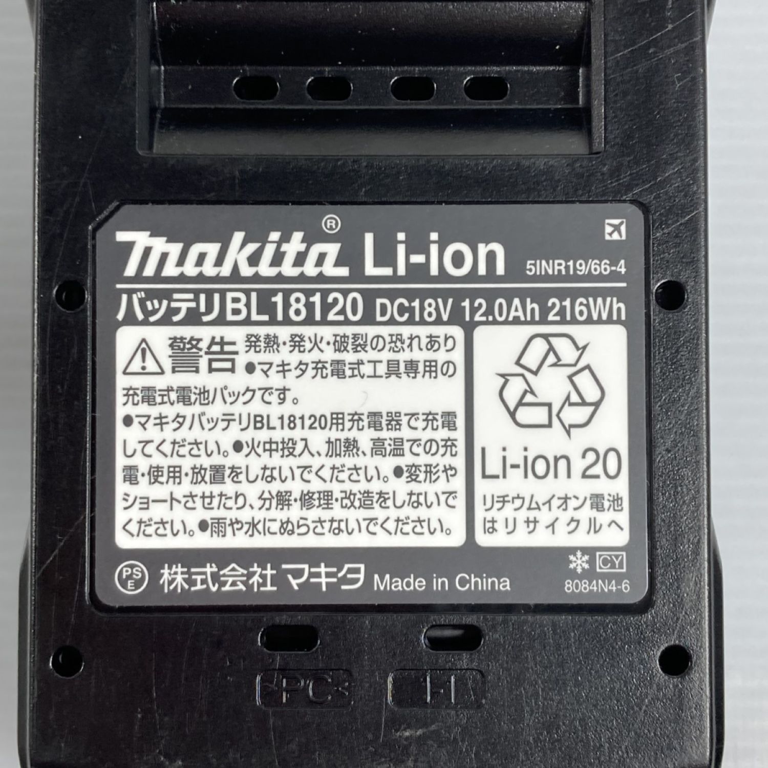 【商品名】中古 MAKITA マキタ 18V/12.0Ah リチウムイオンバッテリ 箱付 PSEマークあり (4) BL18120 ブラック Sランク
