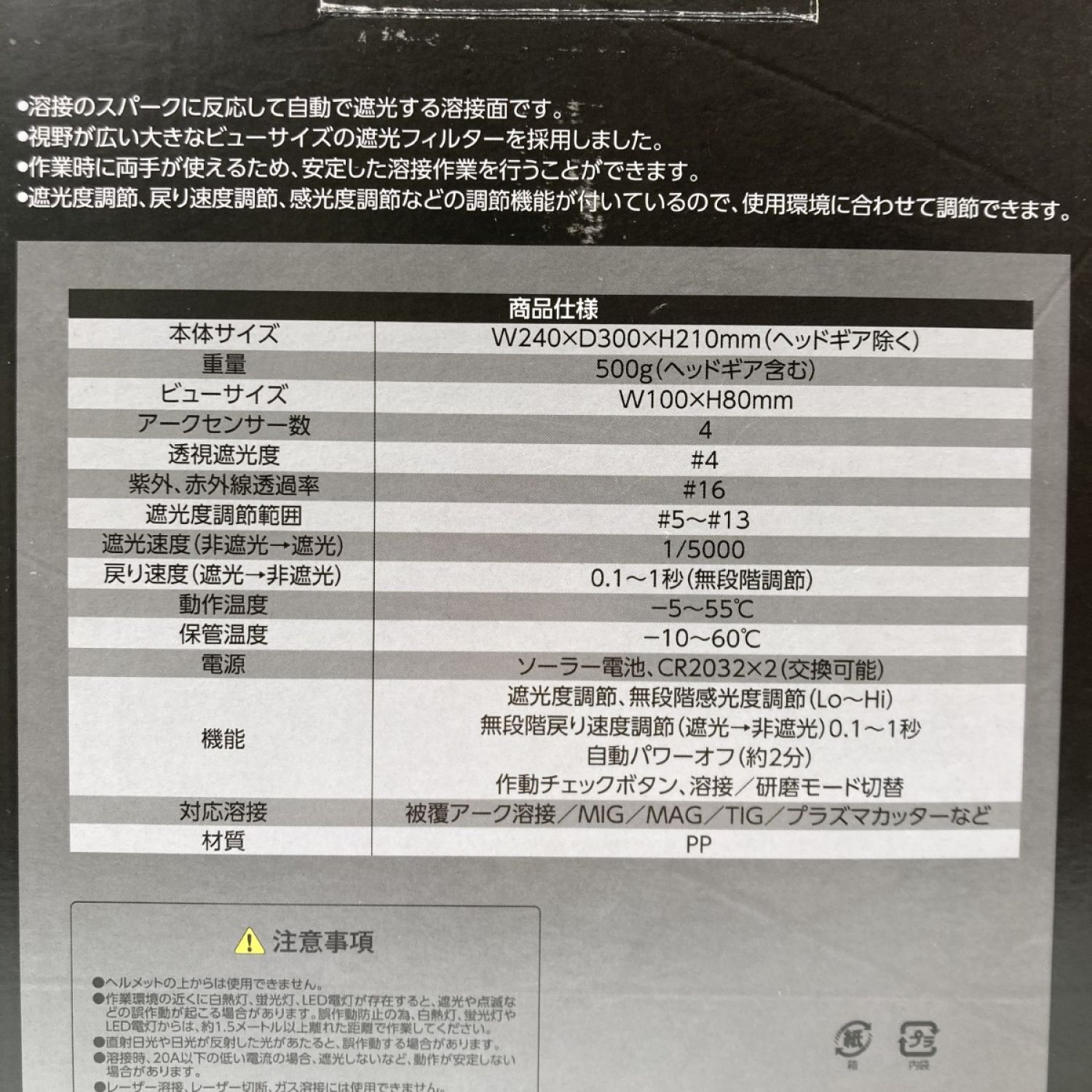 【商品名】中古 ASTRO PRODUCTS アストロプロダクツ 自動遮光溶接面 交換用内・外保護プレート付 WH142 ブラック Aランク