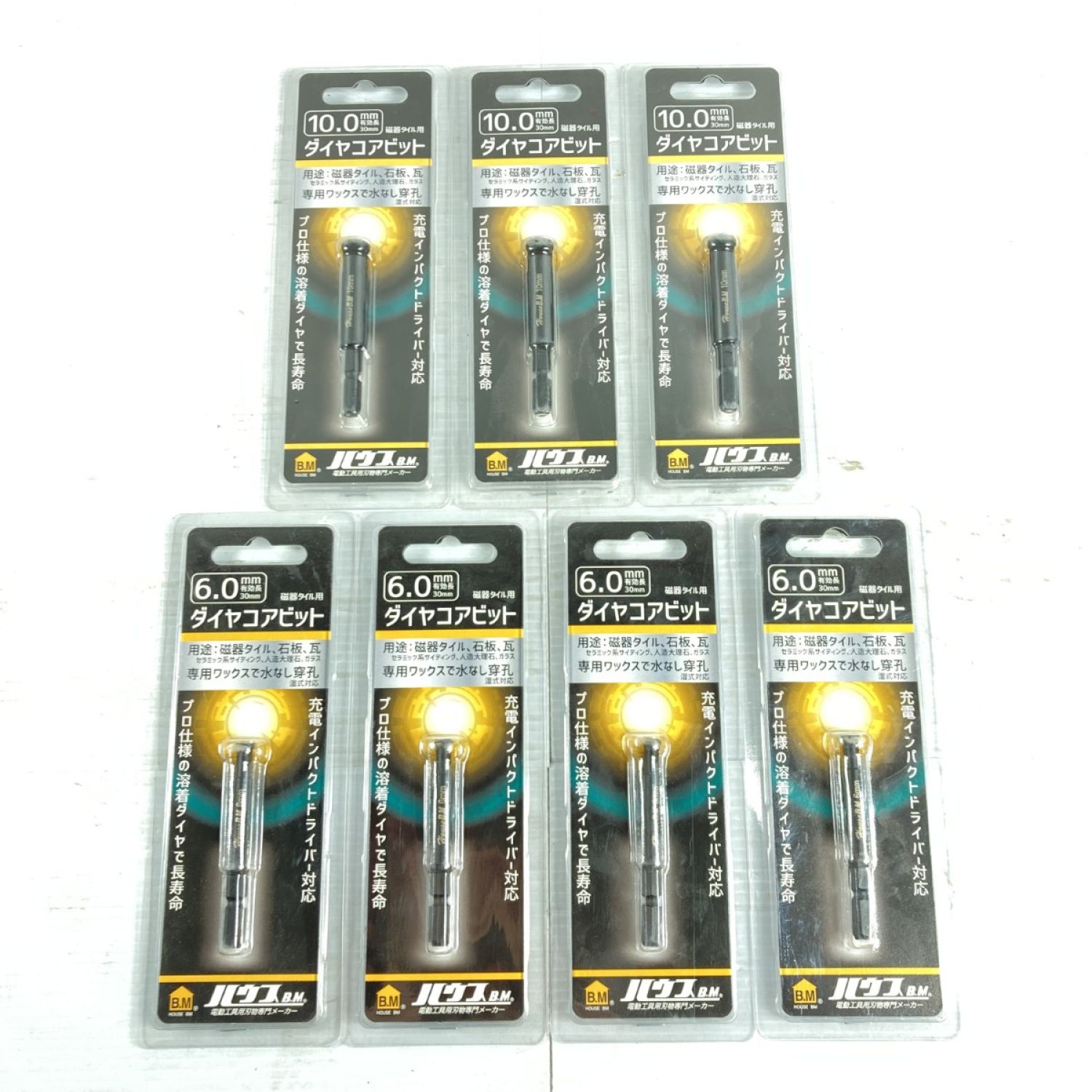 【商品名】中古 HOUSEBM 6.0mm/10.0mm 磁器タイル用ダイヤコアビット 7点セット DCB-6/DCB-10 Sランク
