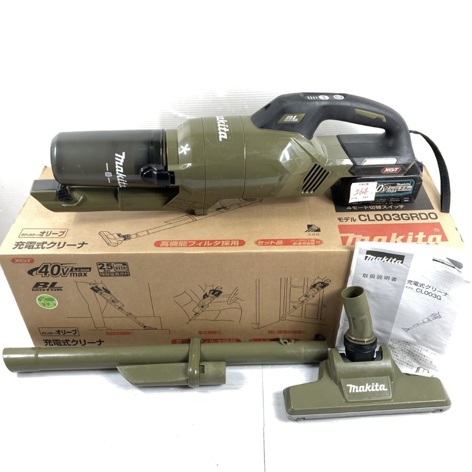 MAKITA マキタ 40Vmax 充電式クリーナ バッテリ1個付属 PSEマークあり 充電器なし CL003G オリーブ