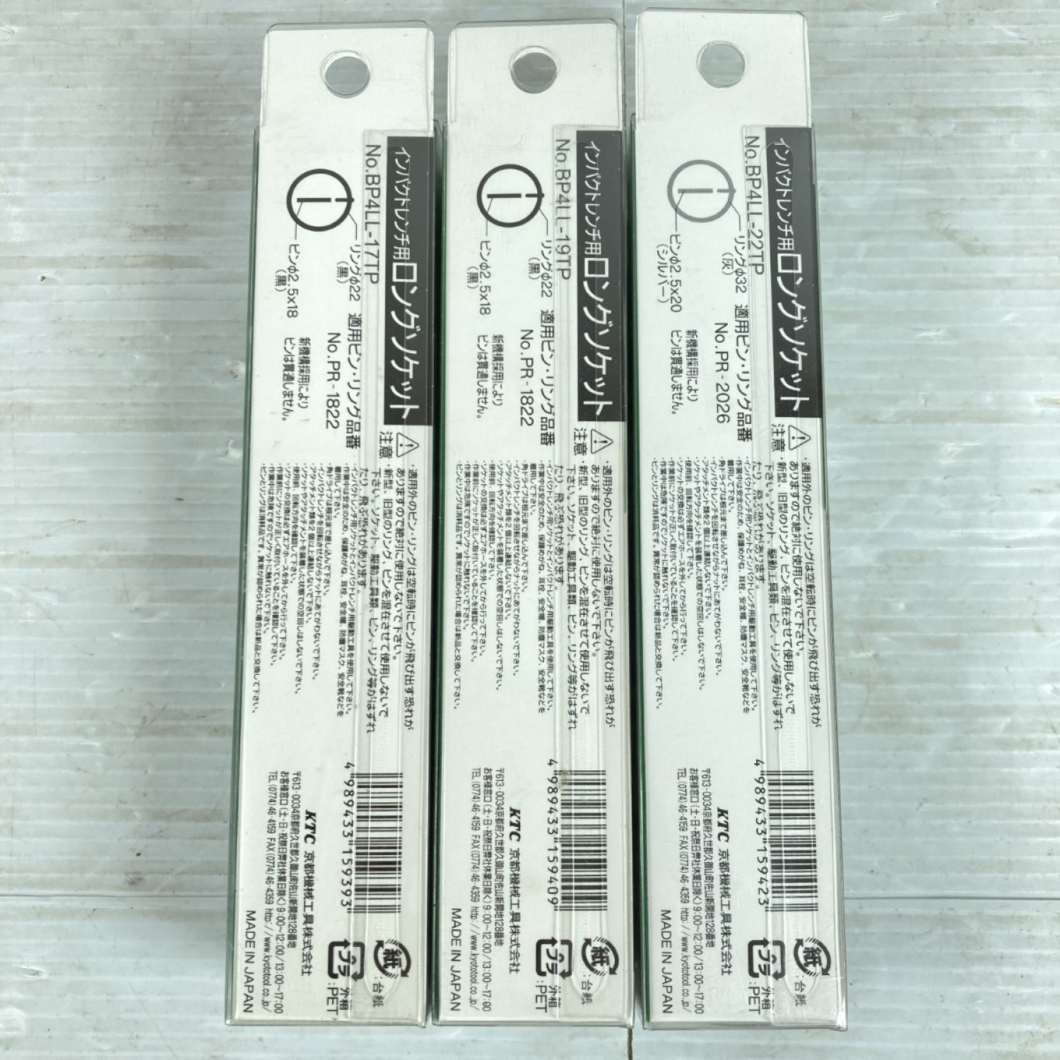 【商品名】中古 KTC ケーティーシー インパクトレンチ用ロングソケット 22/19/17mm ピン・リング付 3個セット BP4LL-17TP/BP4LL-19TP/BP4LL-22TP ブラック Sランク