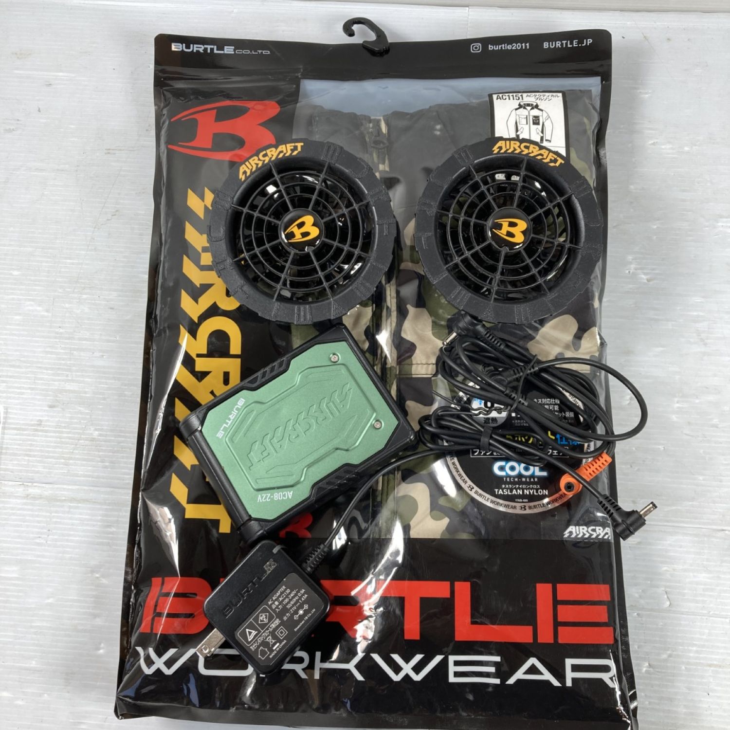 KYOCERA/BURTLE ファン空調服 バッテリ&ACアダプタ セット サイズ3XL PSEマークあり AC1151/AC08-22V マーリン
