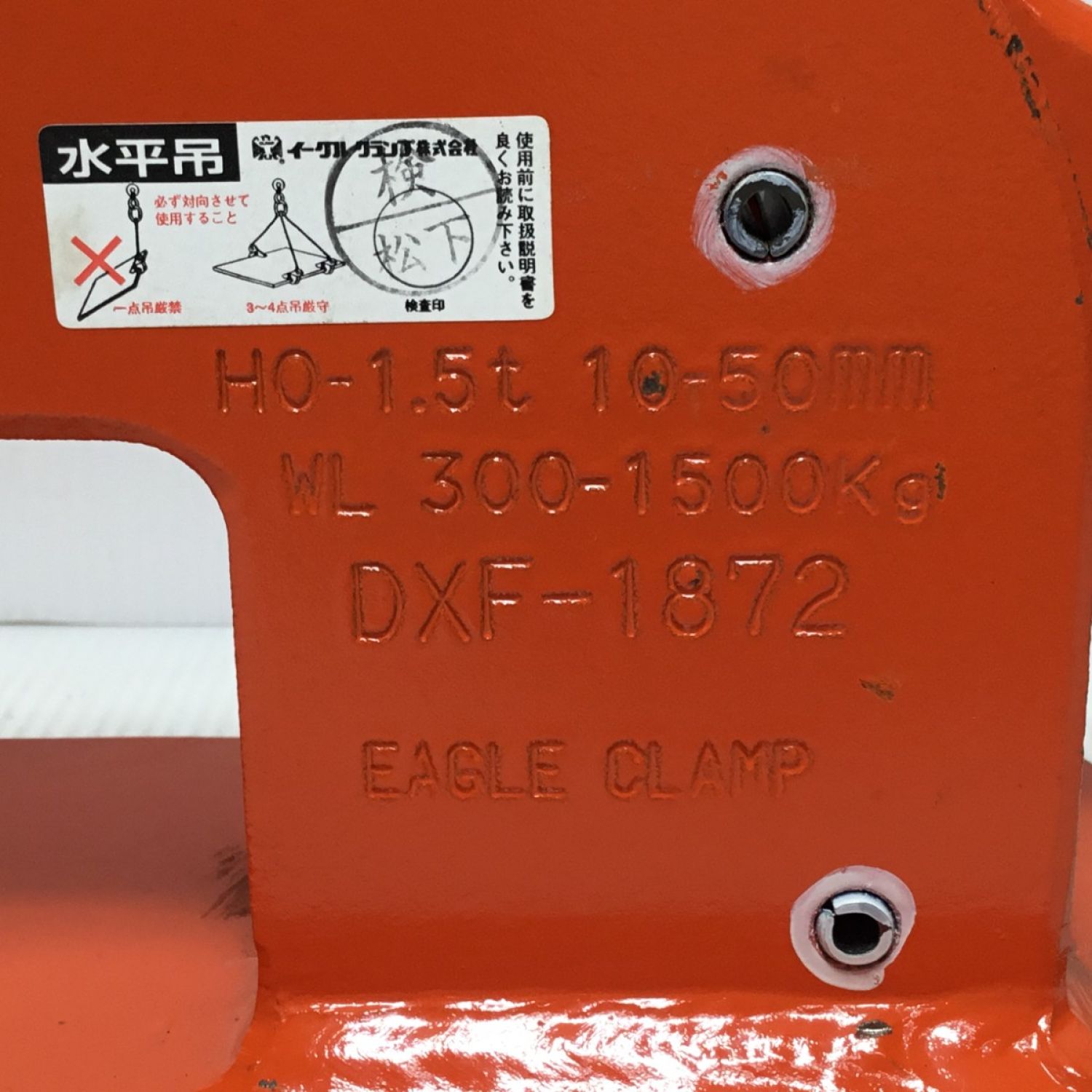 【商品名】中古 イーグルクランプ株式会社 クランプ 程度B 水平吊用 HO-1.5t オレンジ Bランク