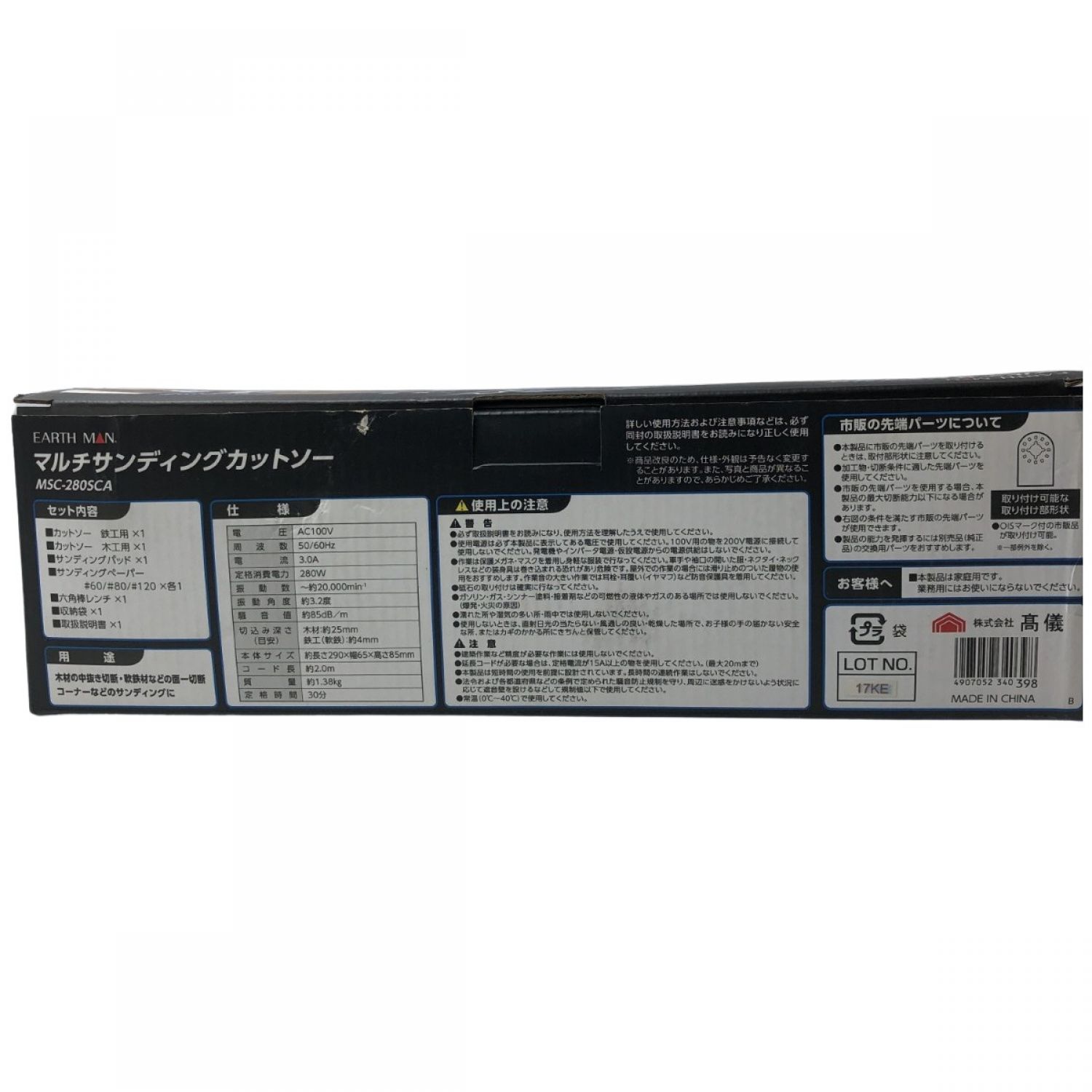 €€ EARTH MAN アースマン マルチサンディングカットソー MSC-280SCA ブルー