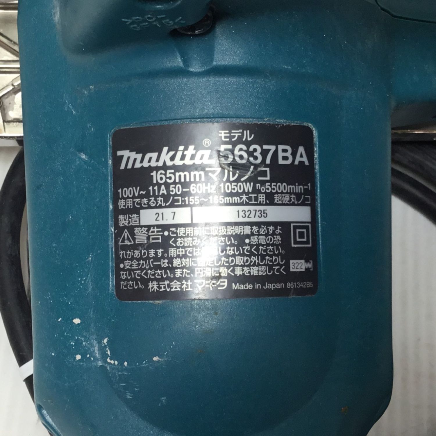 【商品名】中古 MAKITA マキタ 丸のこ 程度C 本体のみ コード式 165mm 5637BA ブルー Cランク