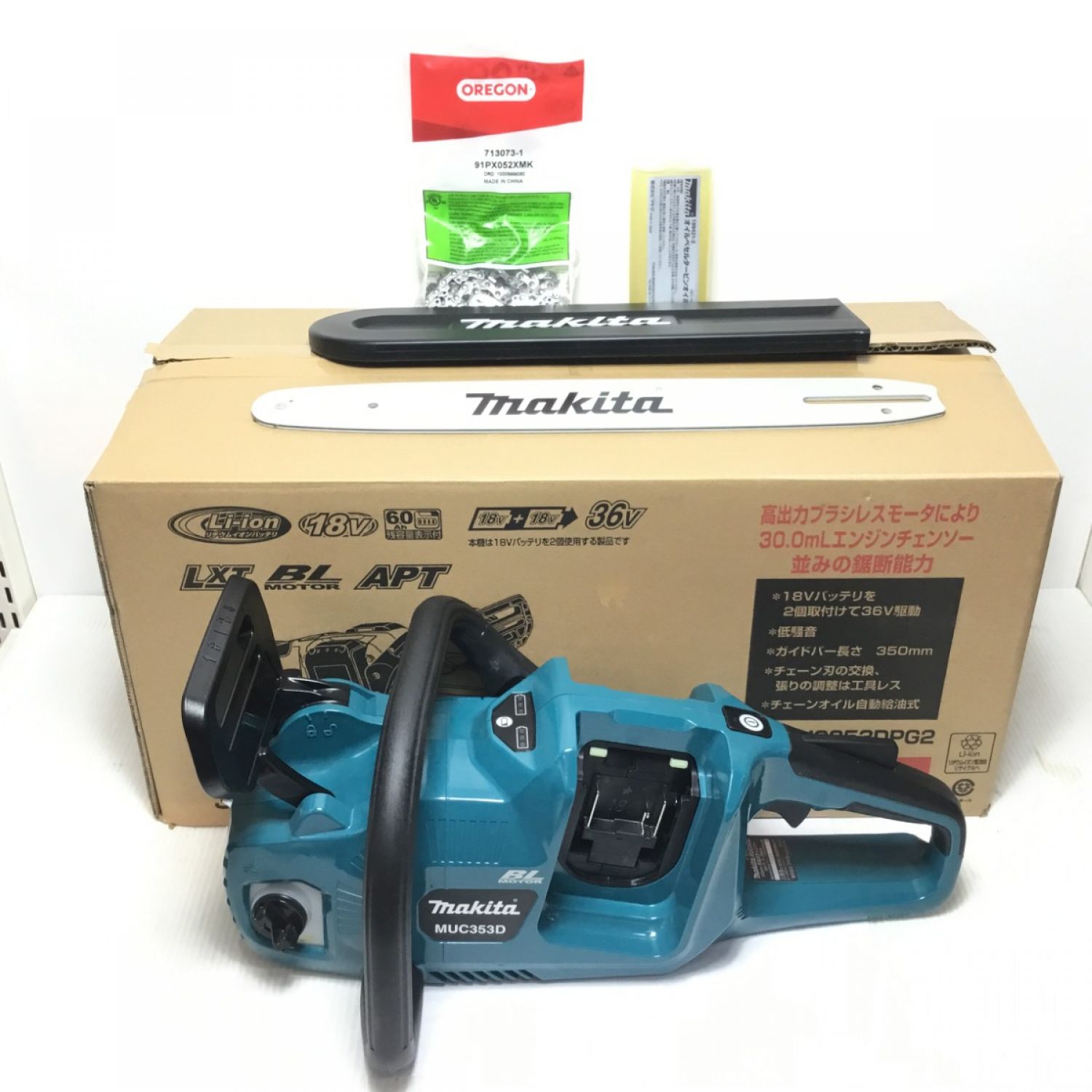 MAKITA マキタ チェーンソー 開封品(S) 付属品完備 コードレス式 350mm 18v+18v MUC353D ブルー