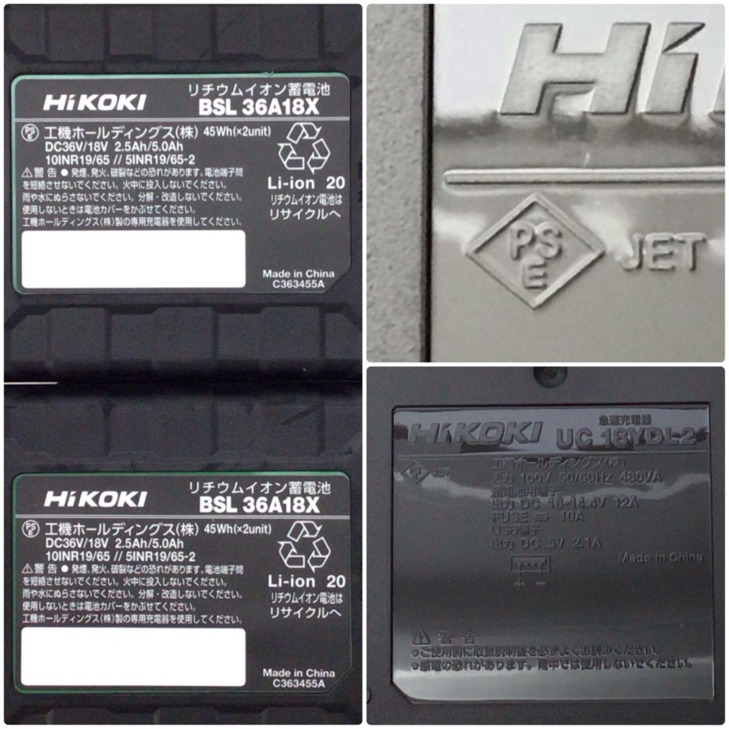 充電器とバッテリーにはPSEマークがございます。