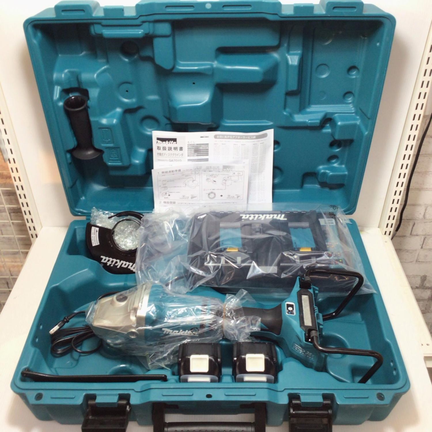 MAKITA マキタ ディスクグラインダー 未使用品(S) 充電器・充電池2個・ケース付 コードレス式 18v×2 0002482Y GA701D ブルー