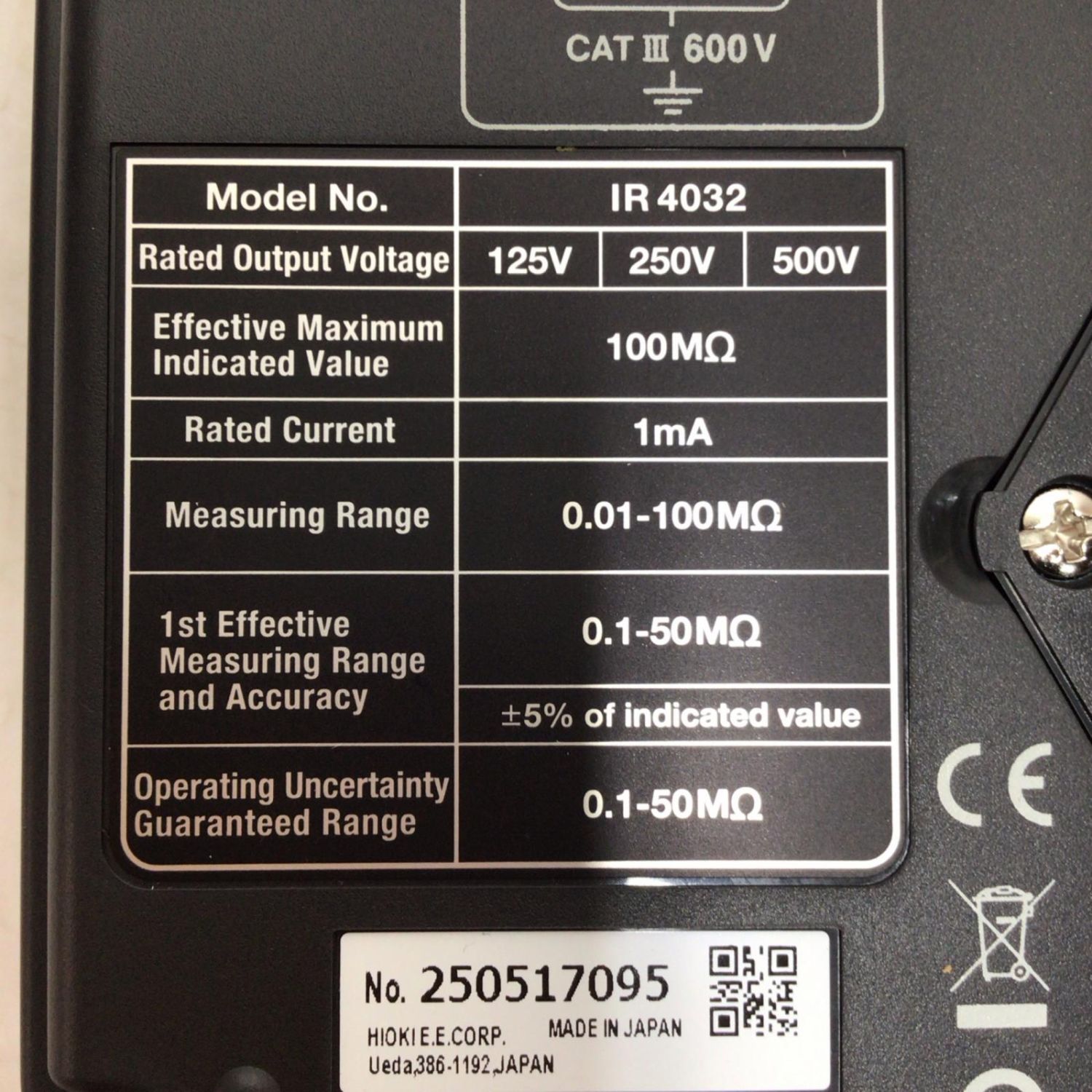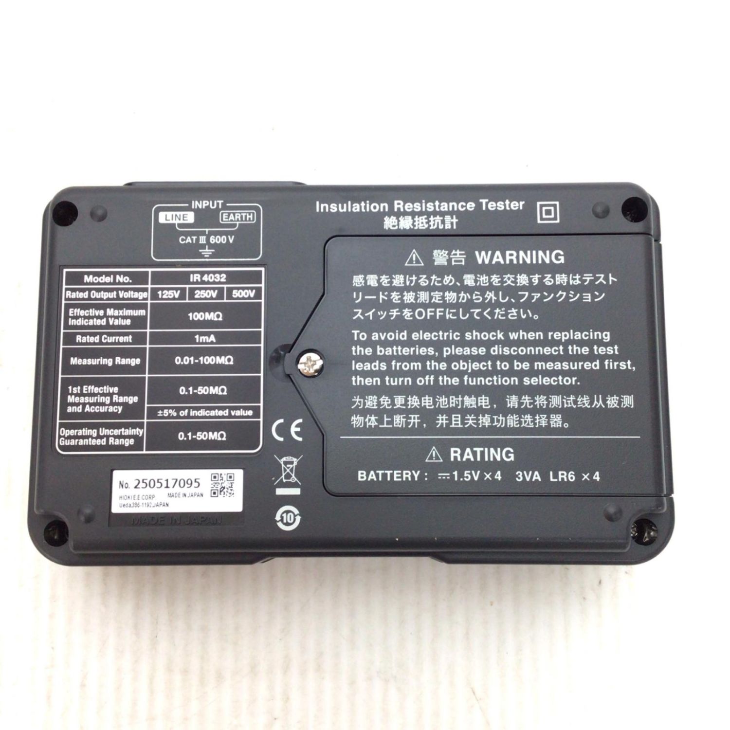HIOKI 絶縁抵抗計 未使用品(S) 付属品完備 250517095 IR4032-11